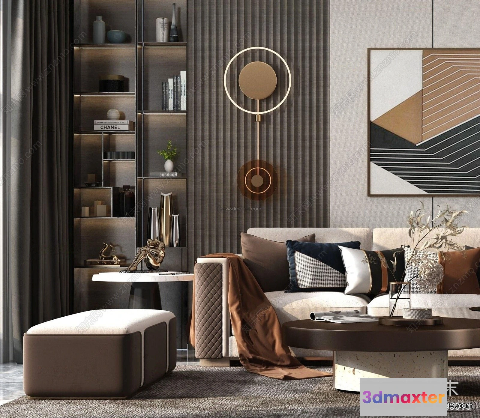 - Name: Modern Style Interior 3D Blocks – Living Room 3D Model – 052