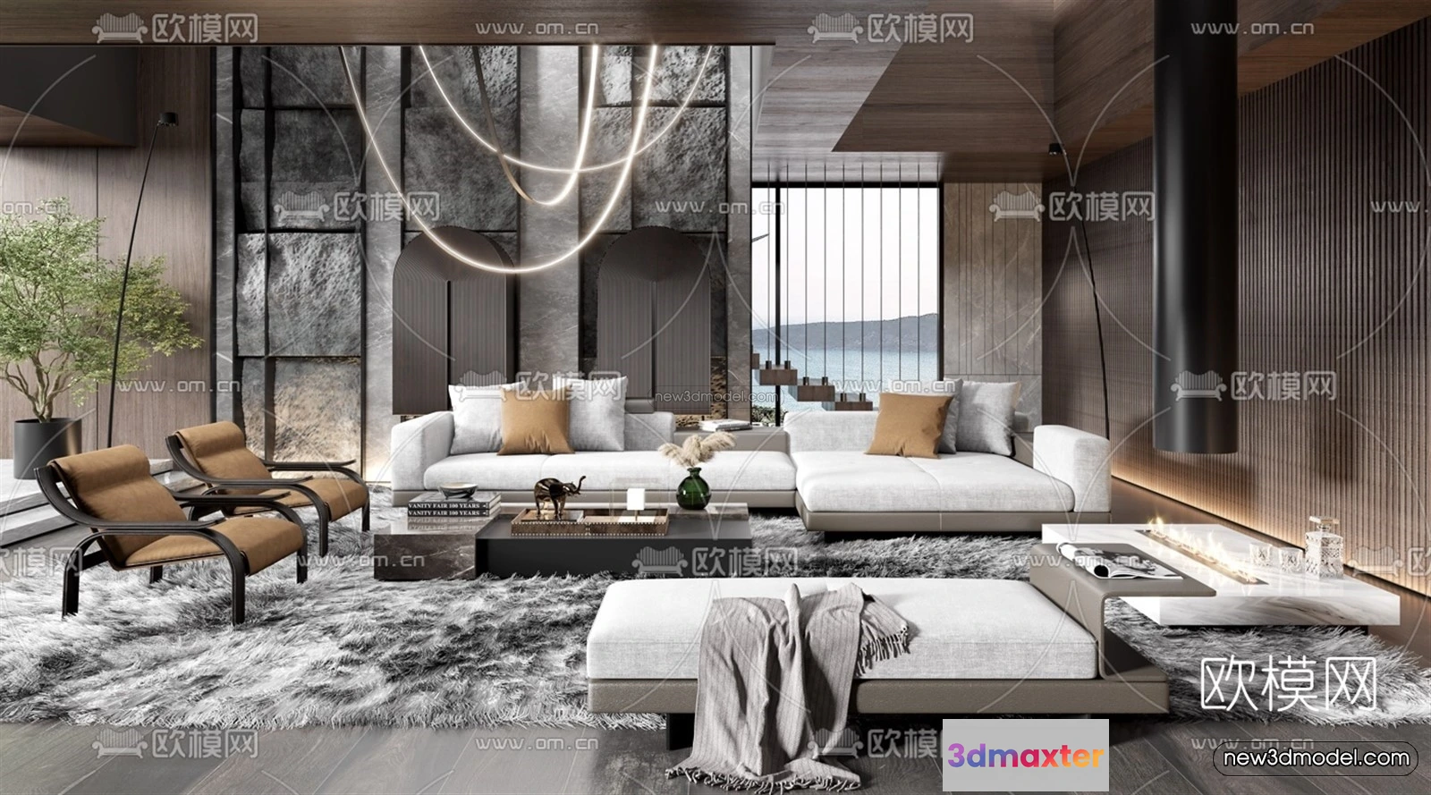 Modern Style Interior 3D Blocks – Living Room 3D Model – 056 – Living room 3D Model – VRAY