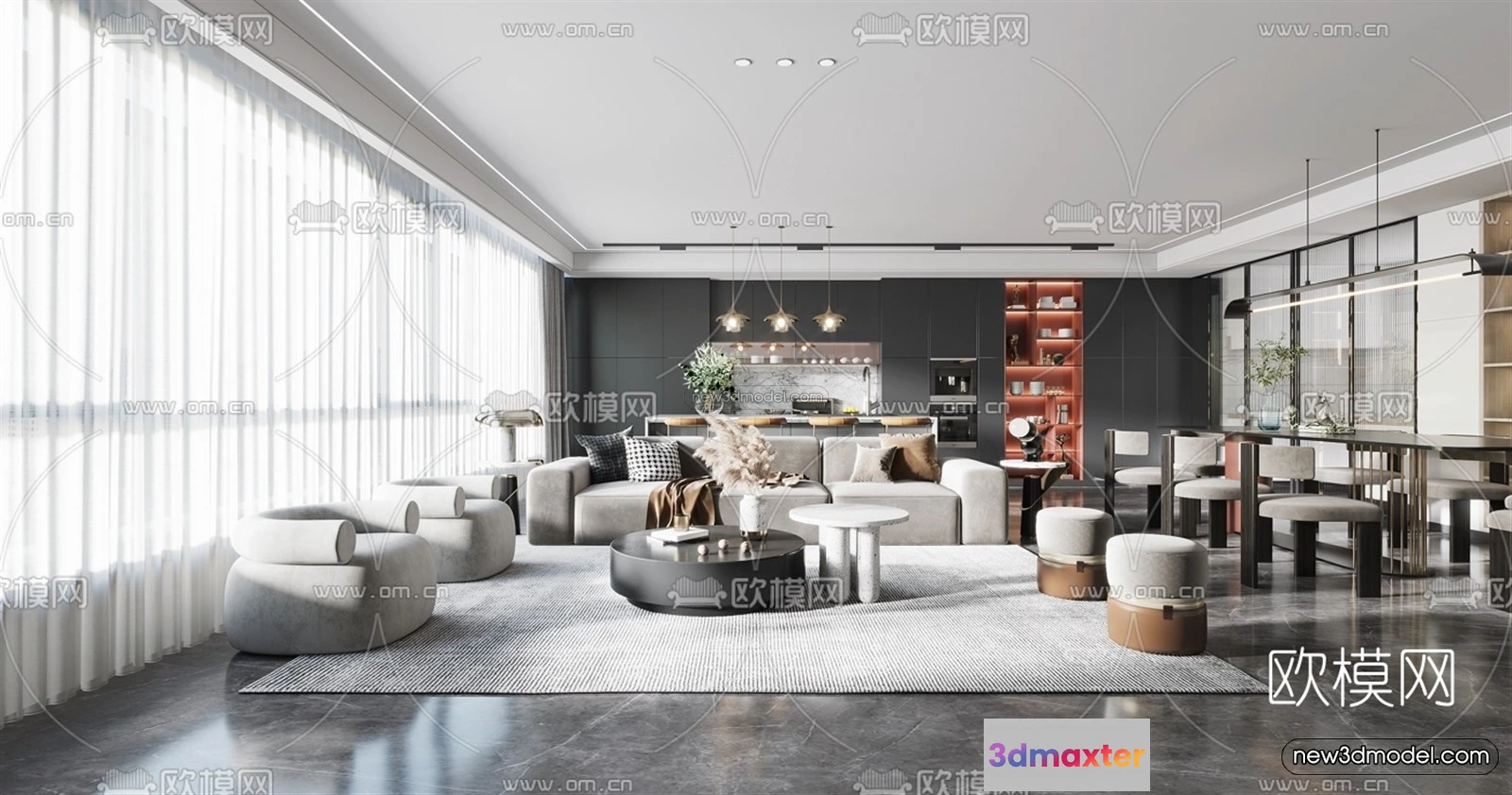 - Name: Modern Style Interior 3D Blocks – Living Room 3D Model – 057