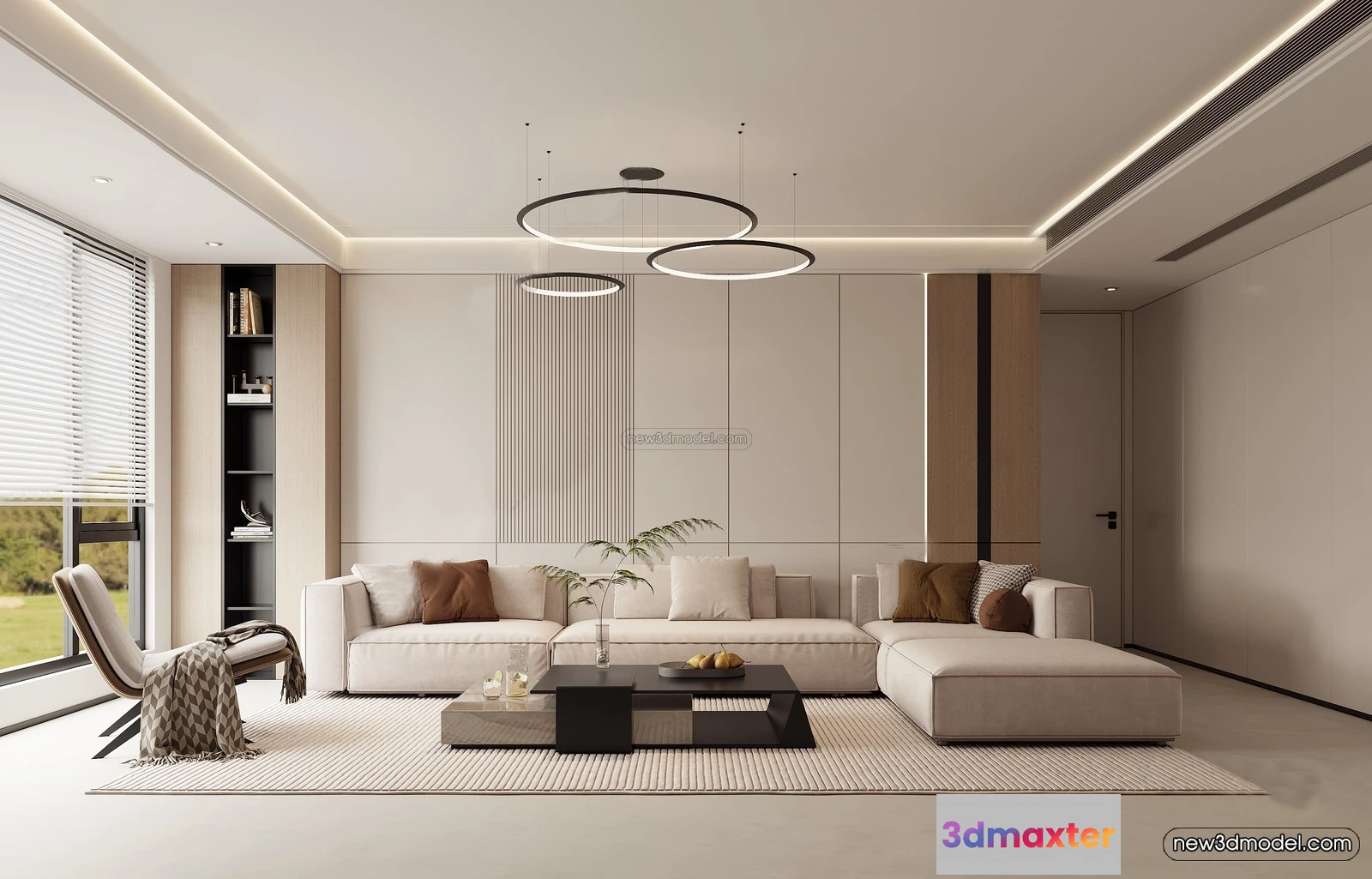 Modern Style Interior 3D Blocks – Living Room 3D Model – 077 – Living room 3D Model – VRAY
