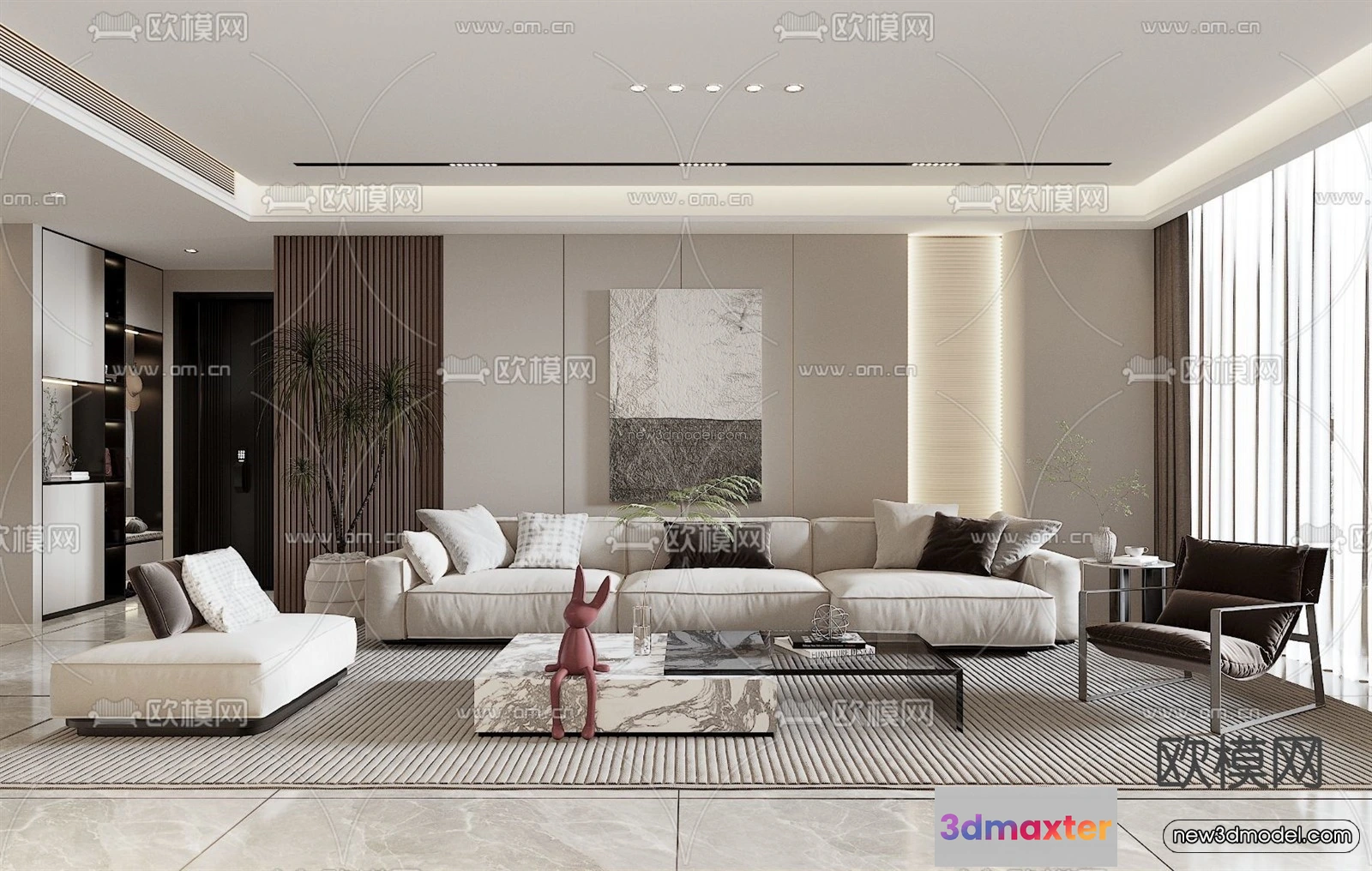 Modern Style Interior 3D Blocks – Living Room 3D Model – 082 – Living room 3D Model – VRAY
