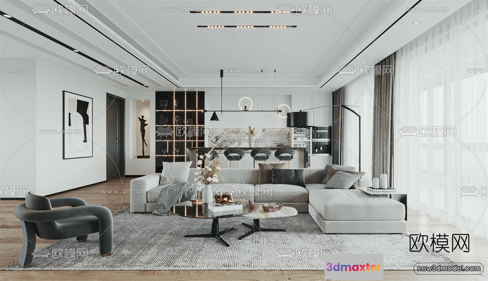 Modern Style Interior 3D Blocks – Living Room 3D Model – 100 – Living room 3D Model – VRAY