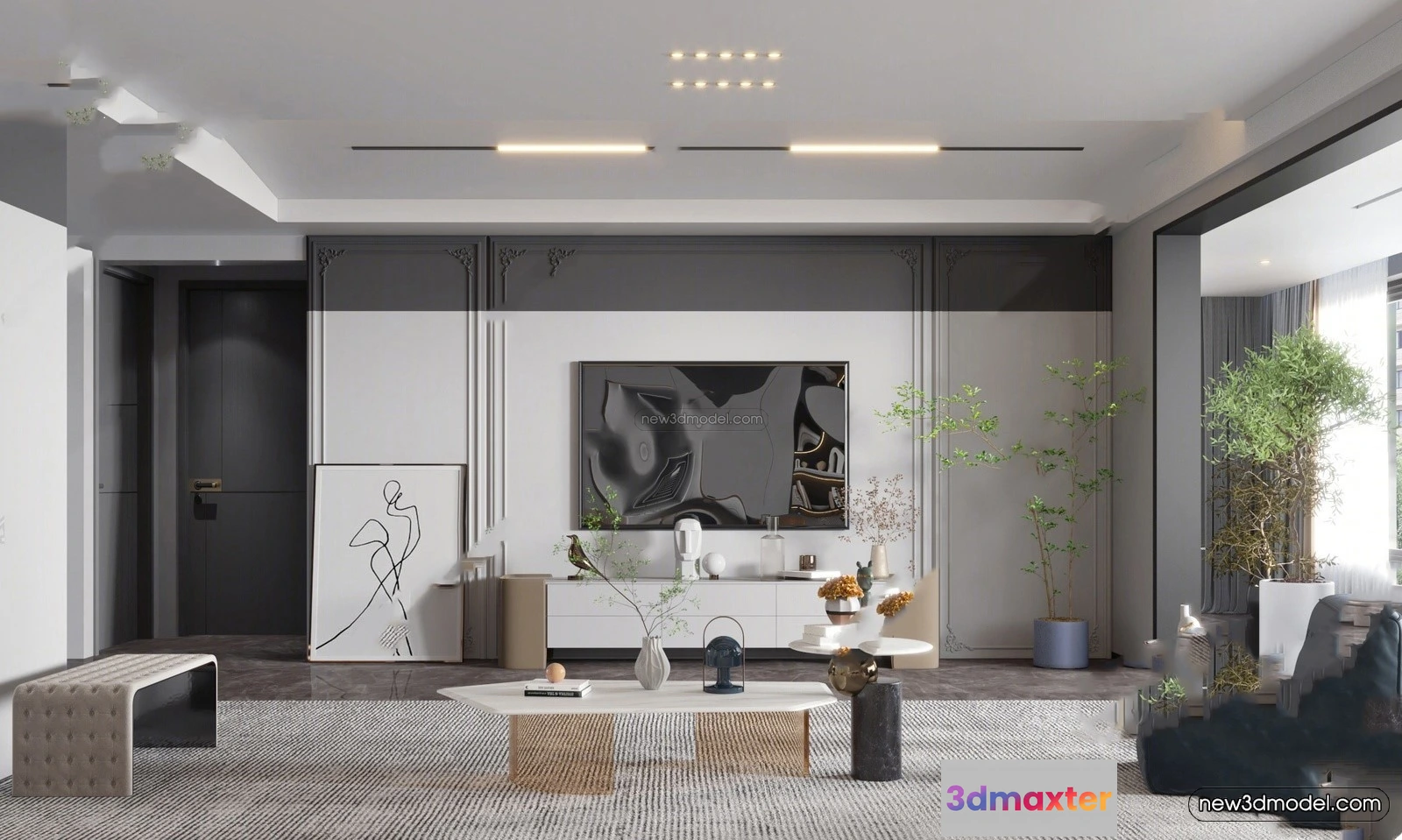 Modern Style Interior 3D Blocks – Living Room 3D Model – 108 – Living room 3D Model – VRAY