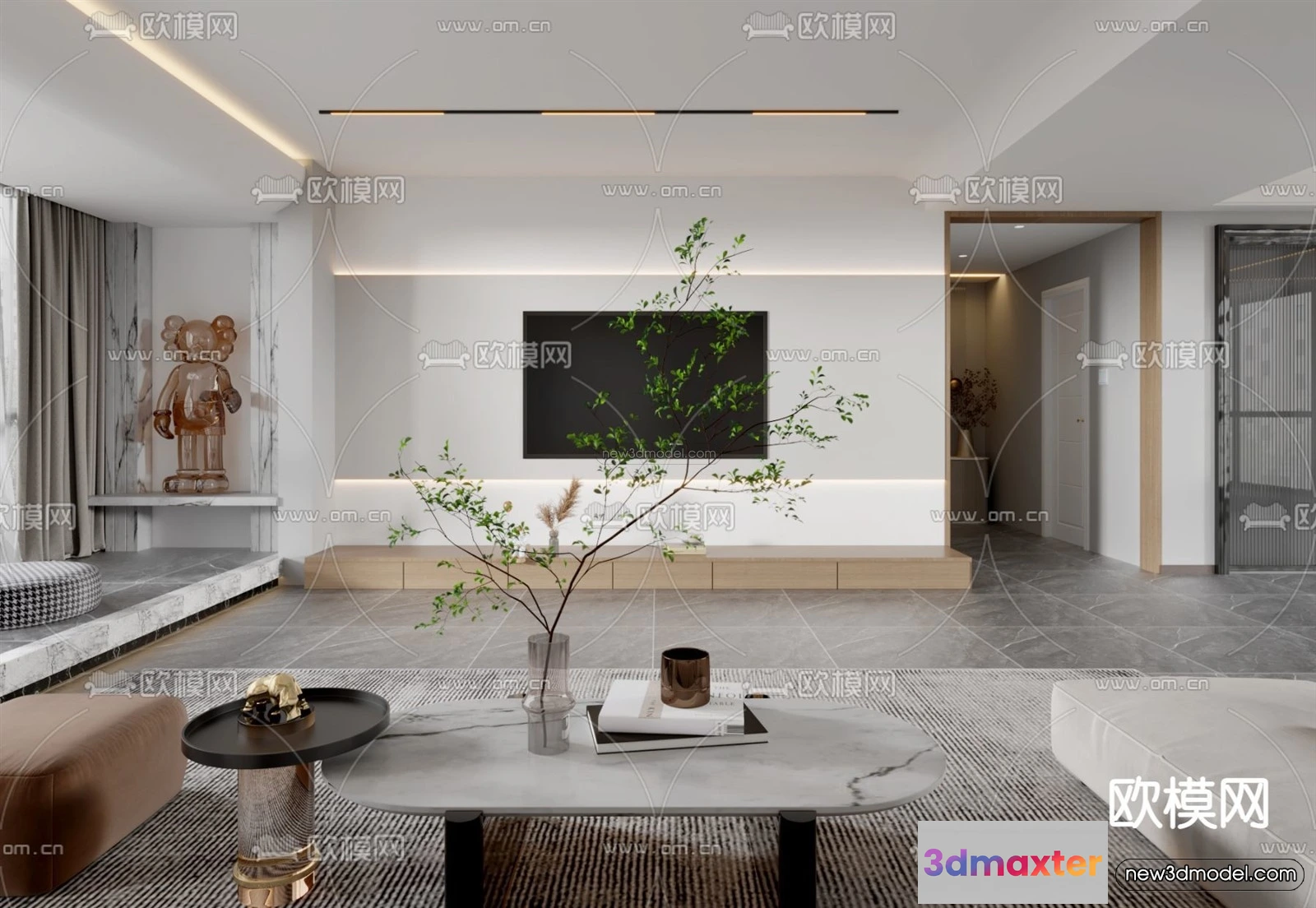 Modern Style Interior 3D Blocks – Living Room 3D Model – 112 – Living room 3D Model – VRAY