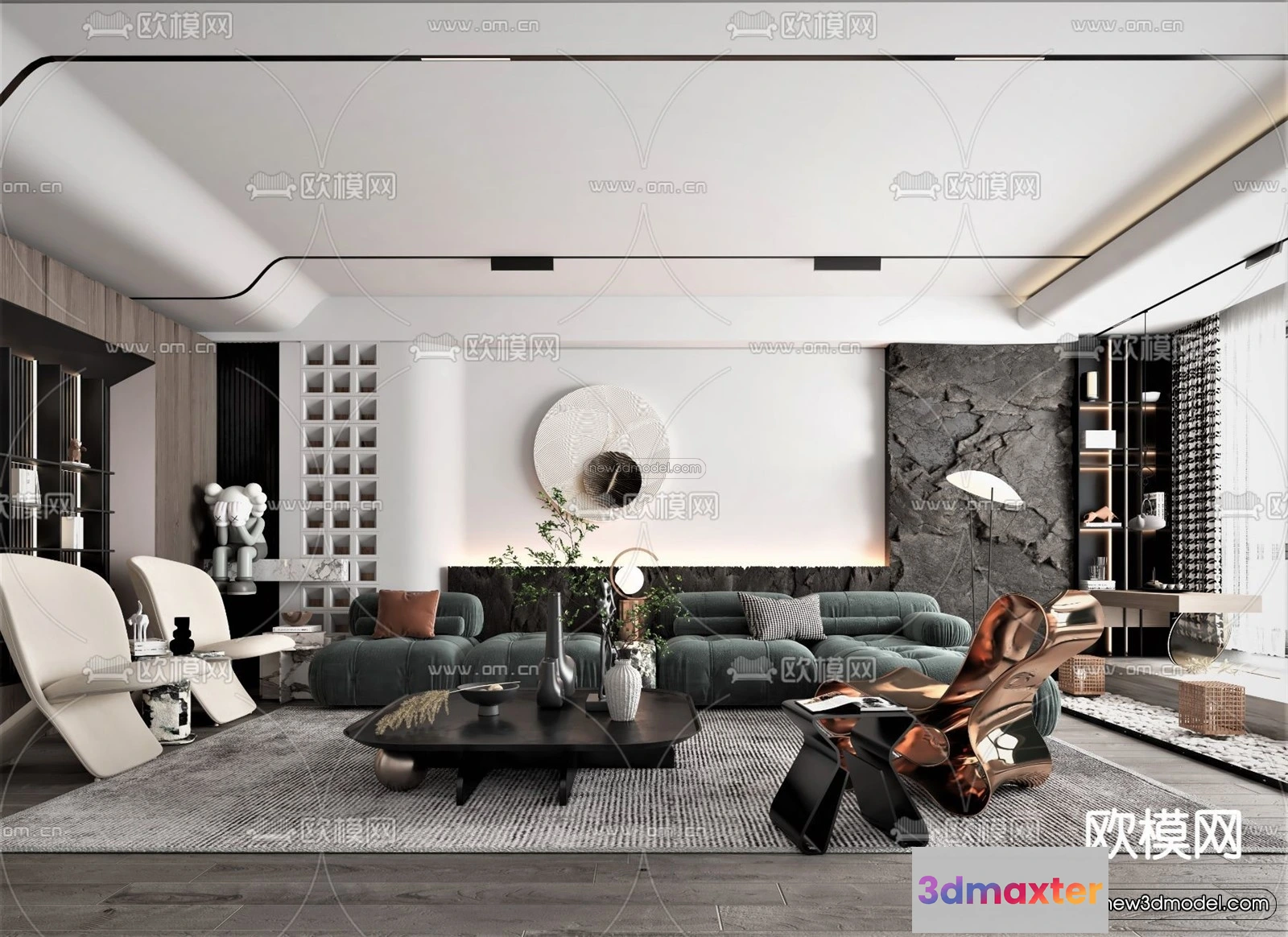 Modern Style Interior 3D Blocks – Living Room 3D Model – 114 – Living room 3D Model – VRAY