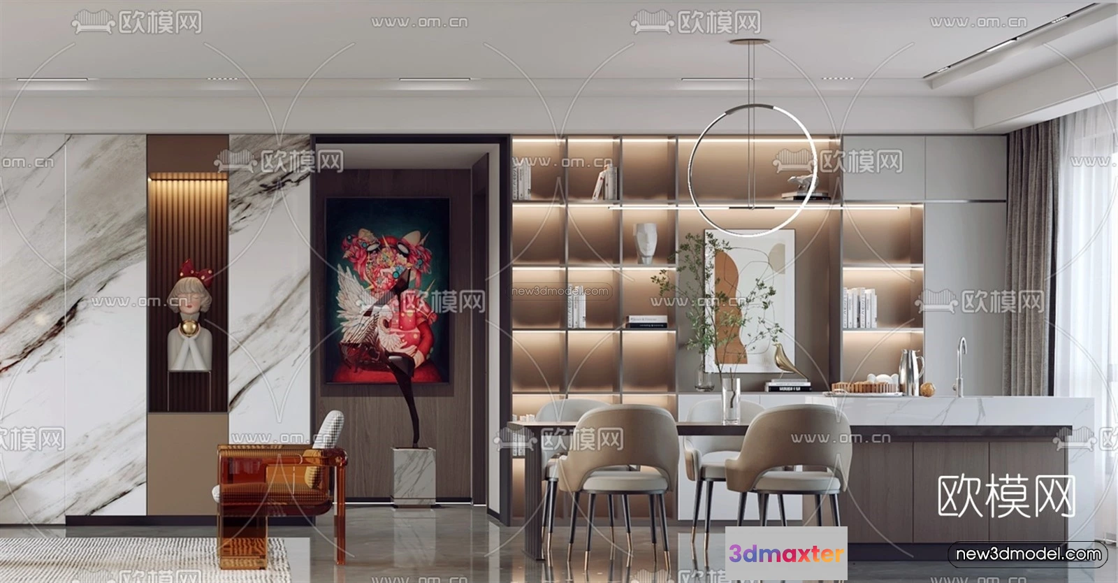 Modern Style Interior 3D Blocks – Living Room 3D Model – 119 – Living room 3D Model – VRAY