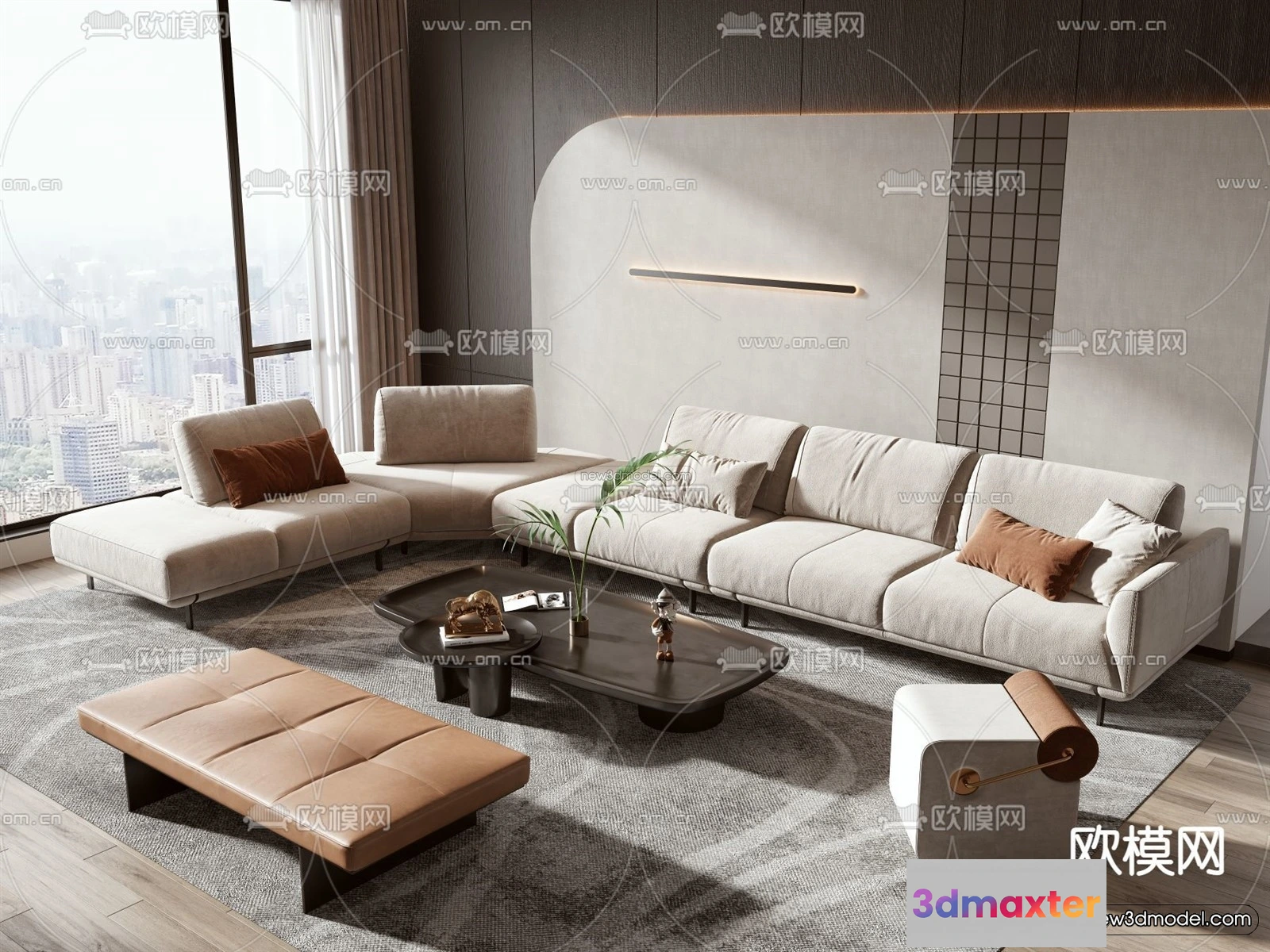 - Name: Modern Style Interior 3D Blocks – Living Room 3D Model – 127