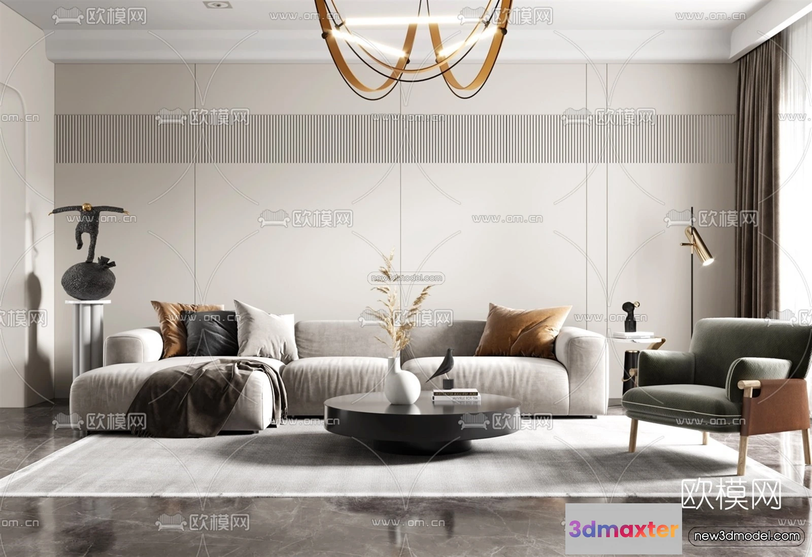 Modern Style Interior 3D Blocks – Living Room 3D Model – 139 – Living room 3D Model – VRAY
