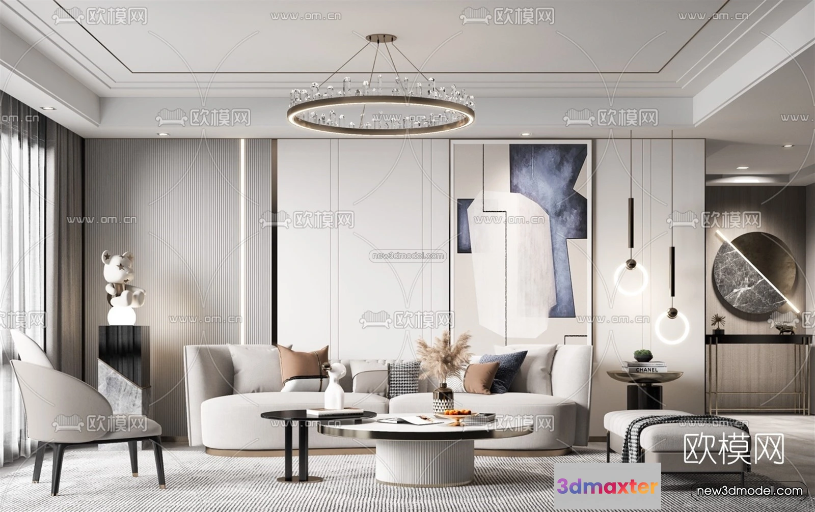 3D Models / 3D Scenes / Interior / Living Room / Modern Style Interior 3D Blocks – Living Room 3D Model – 143 3D Max