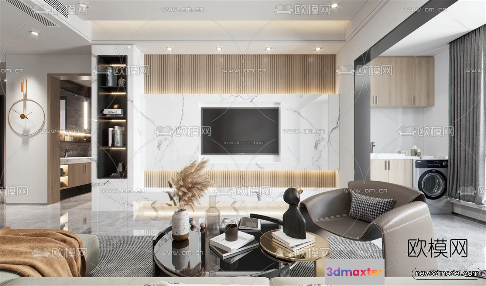 Modern Style Interior 3D Blocks – Living Room 3D Model – 144 – Living room 3D Model – VRAY