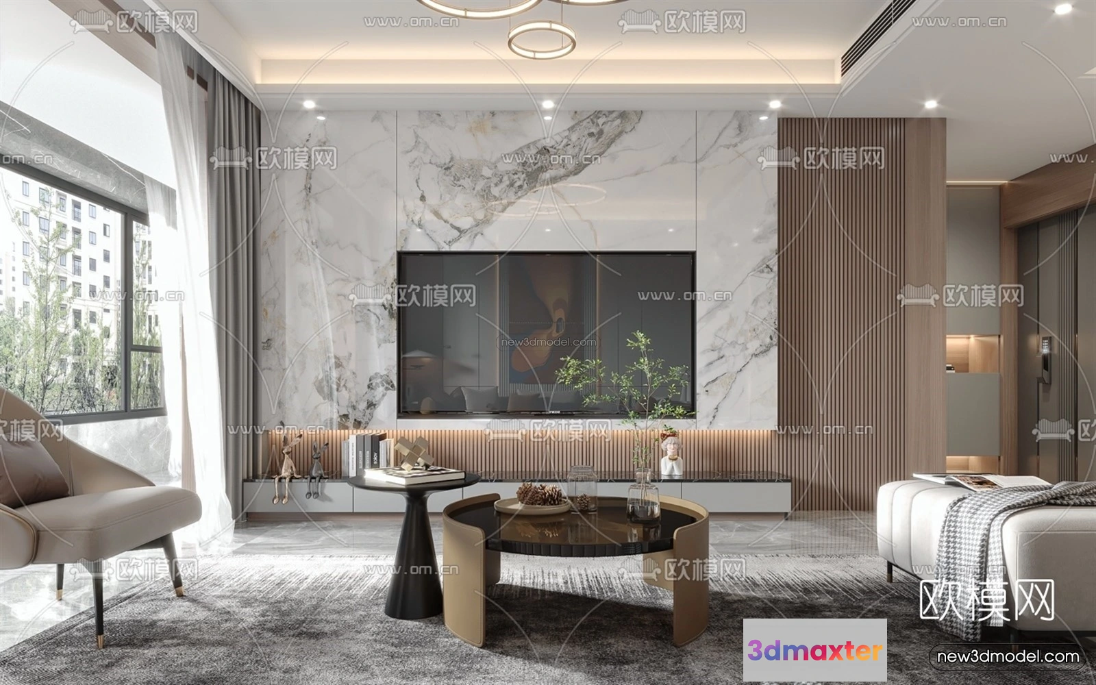 Modern Style Interior 3D Blocks – Living Room 3D Model – 147 – Living room 3D Model – VRAY