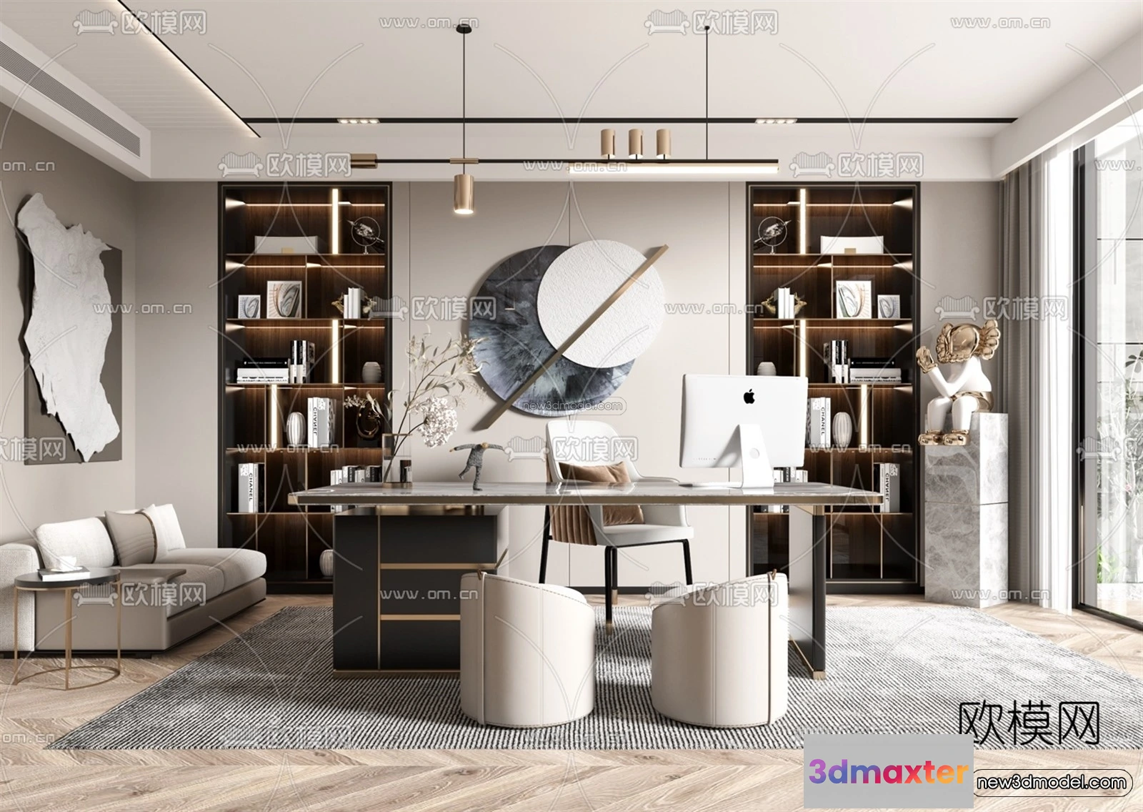 Modern Style Interior 3D Blocks – Study 3D Model – 272 – Office Home 3D Model – VRAY
