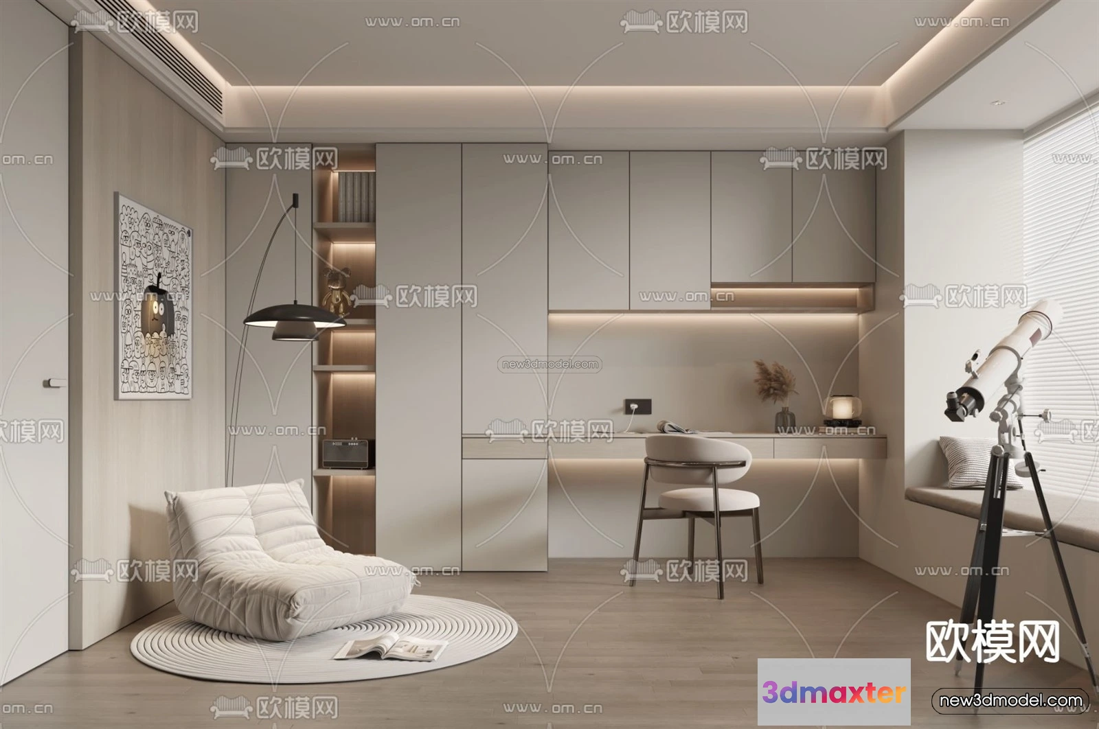 3D Models / 3D Scenes / Interior / Office Home / Modern Style Interior 3D Blocks – Study 3D Model – 273 3D Max