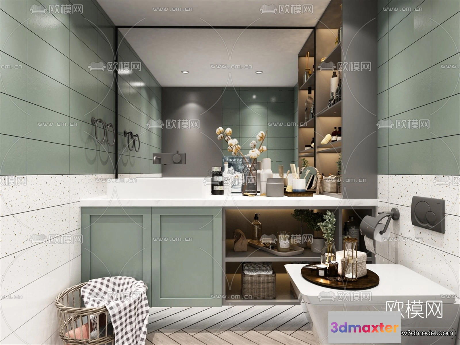 3D Models / 3D Scenes / Interior / Bathroom / Morandi Style Interior 3D Blocks – Bathroom 3D Scene – 195 3D Max