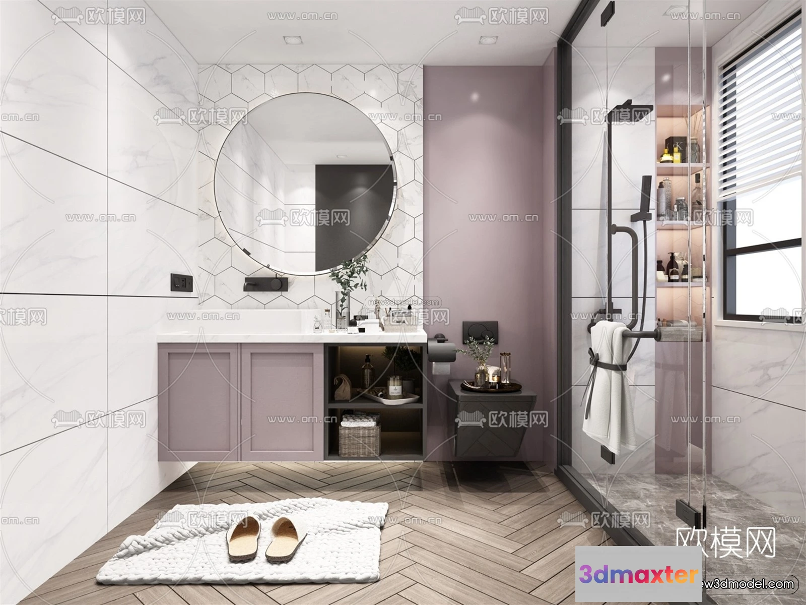 3D Models / 3D Scenes / Interior / Bathroom / Morandi Style Interior 3D Blocks – Bathroom 3D Scene – 198 3D Max