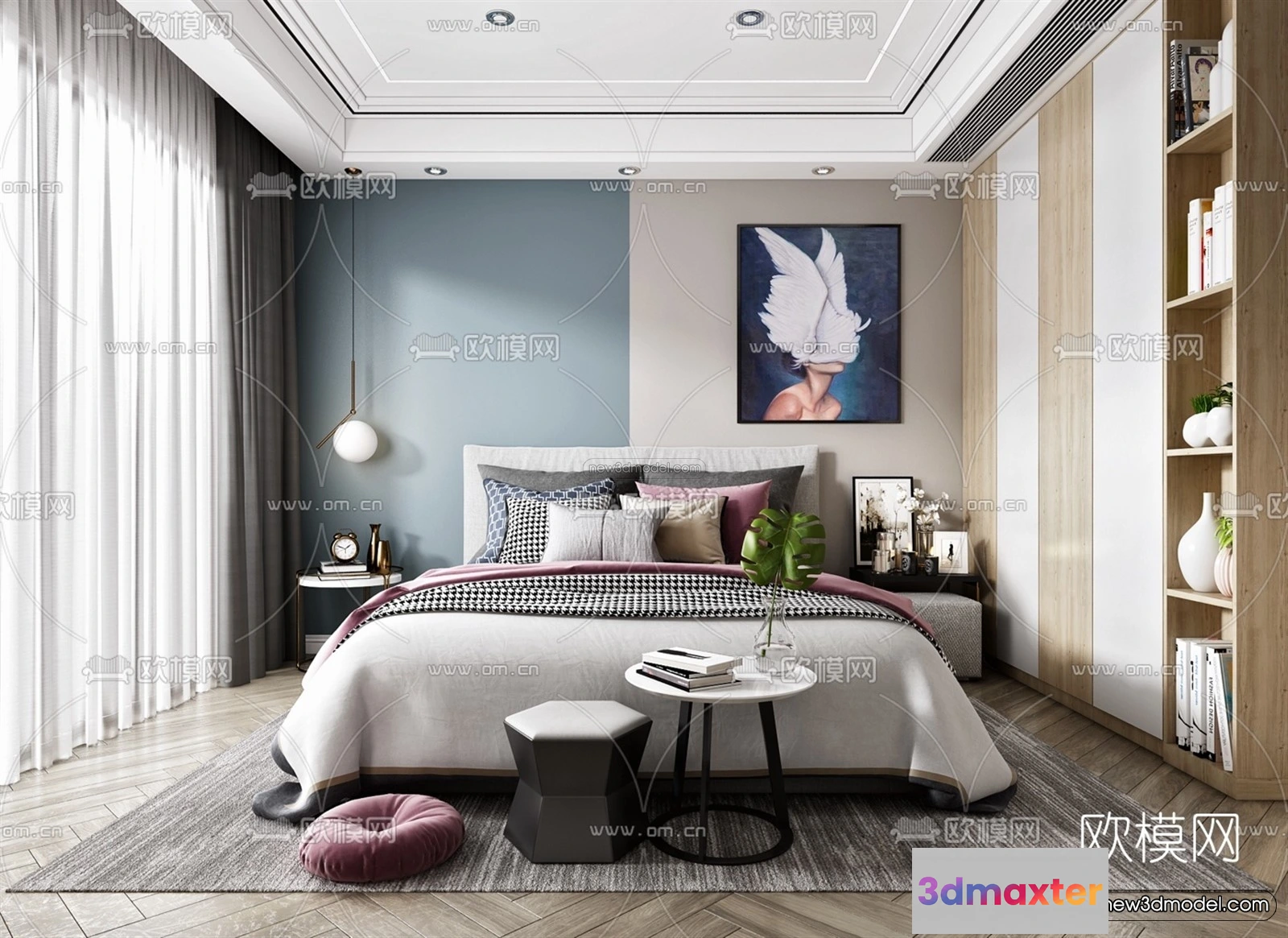 3D Models / 3D Scenes / Interior / Bedroom / Morandi Style Interior 3D Blocks – Bedroom 3D Scene – 124 3D Max