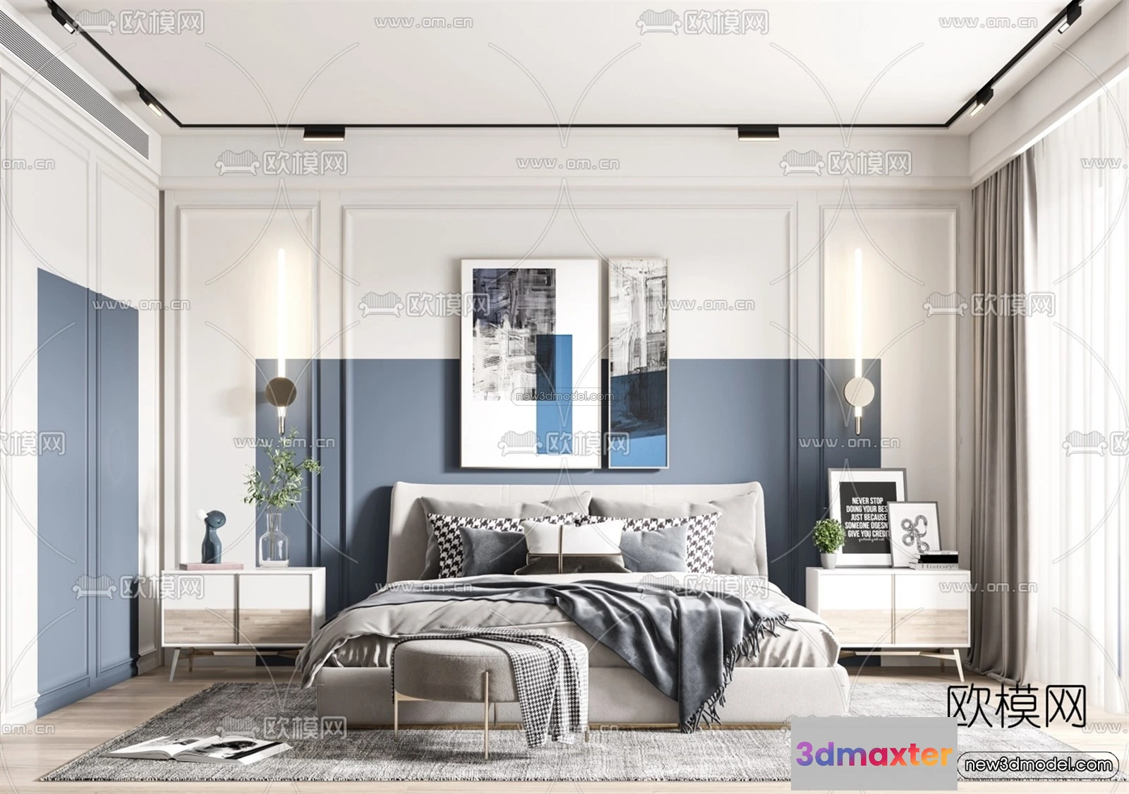 3D Models / 3D Scenes / Interior / Bedroom / Morandi Style Interior 3D Blocks – Bedroom 3D Scene – 129 3D Max