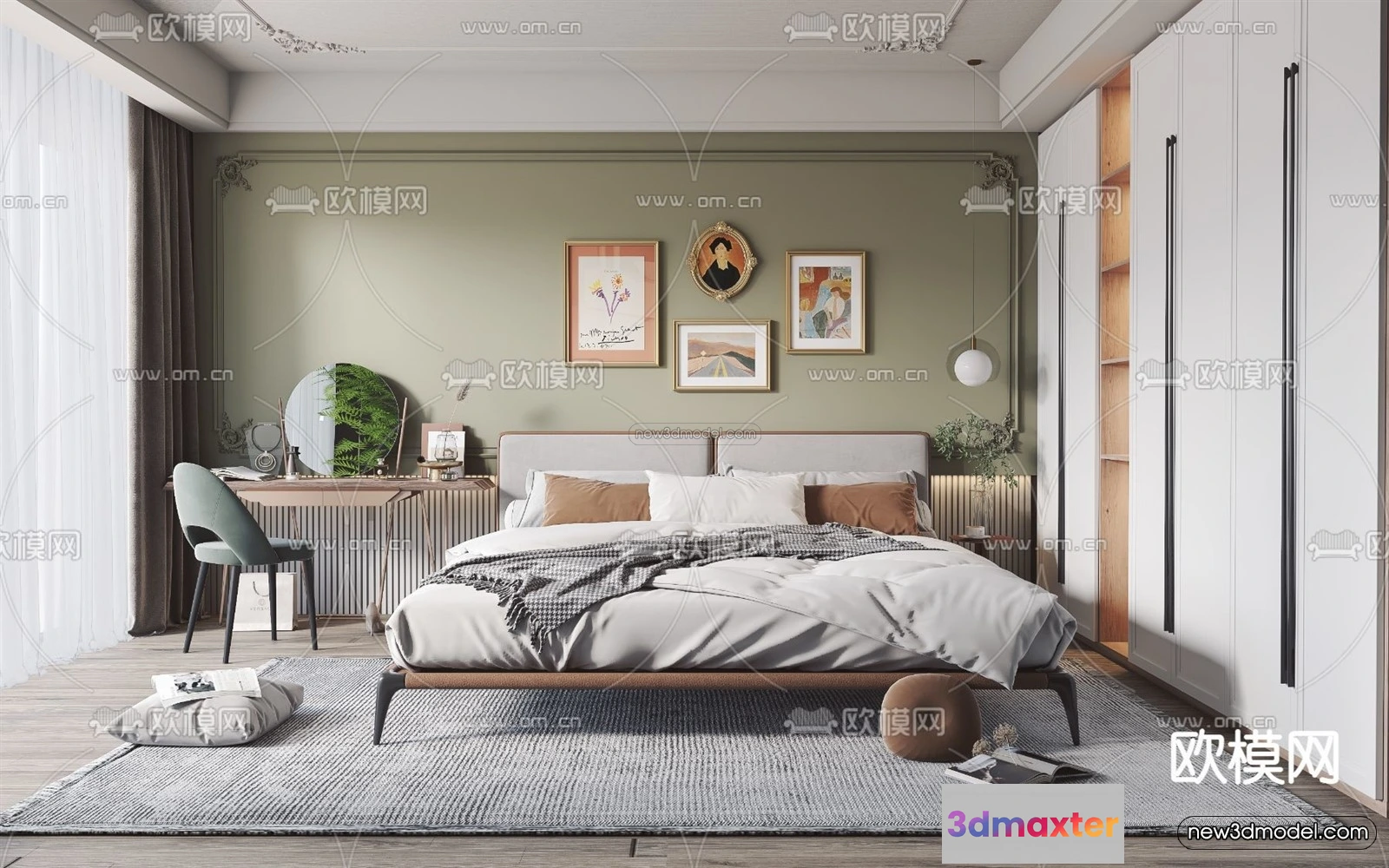 3D Models / 3D Scenes / Interior / Bedroom / Morandi Style Interior 3D Blocks – Bedroom 3D Scene – 130 3D Max