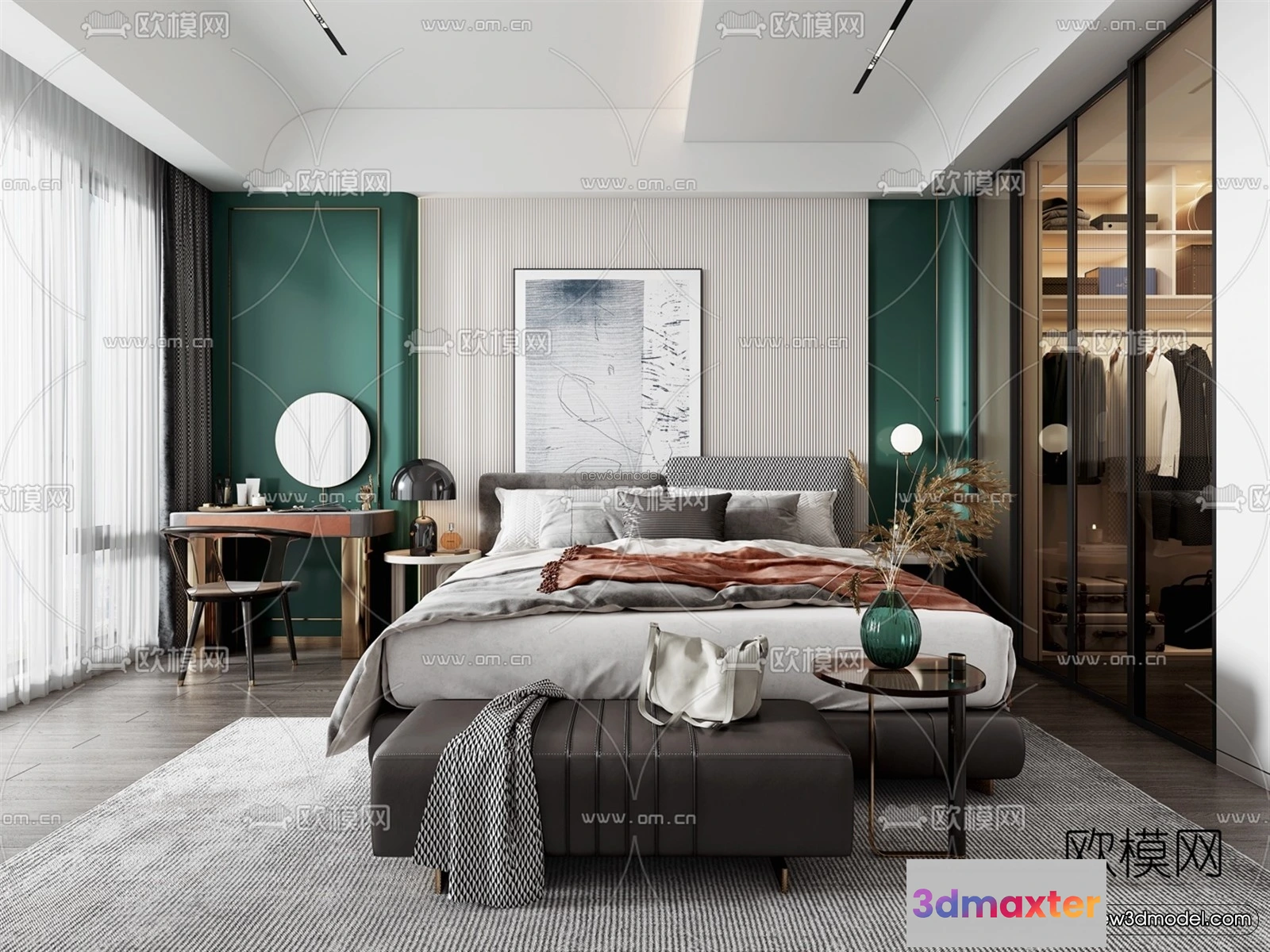 3D Models / 3D Scenes / Interior / Bedroom / Morandi Style Interior 3D Blocks – Bedroom 3D Scene – 143 3D Max