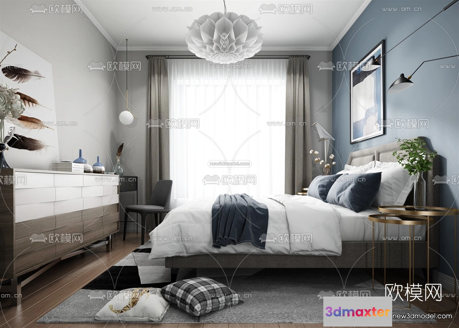 3D Models / 3D Scenes / Interior / Bedroom / Morandi Style Interior 3D Blocks – Bedroom 3D Scene – 149 3D Max