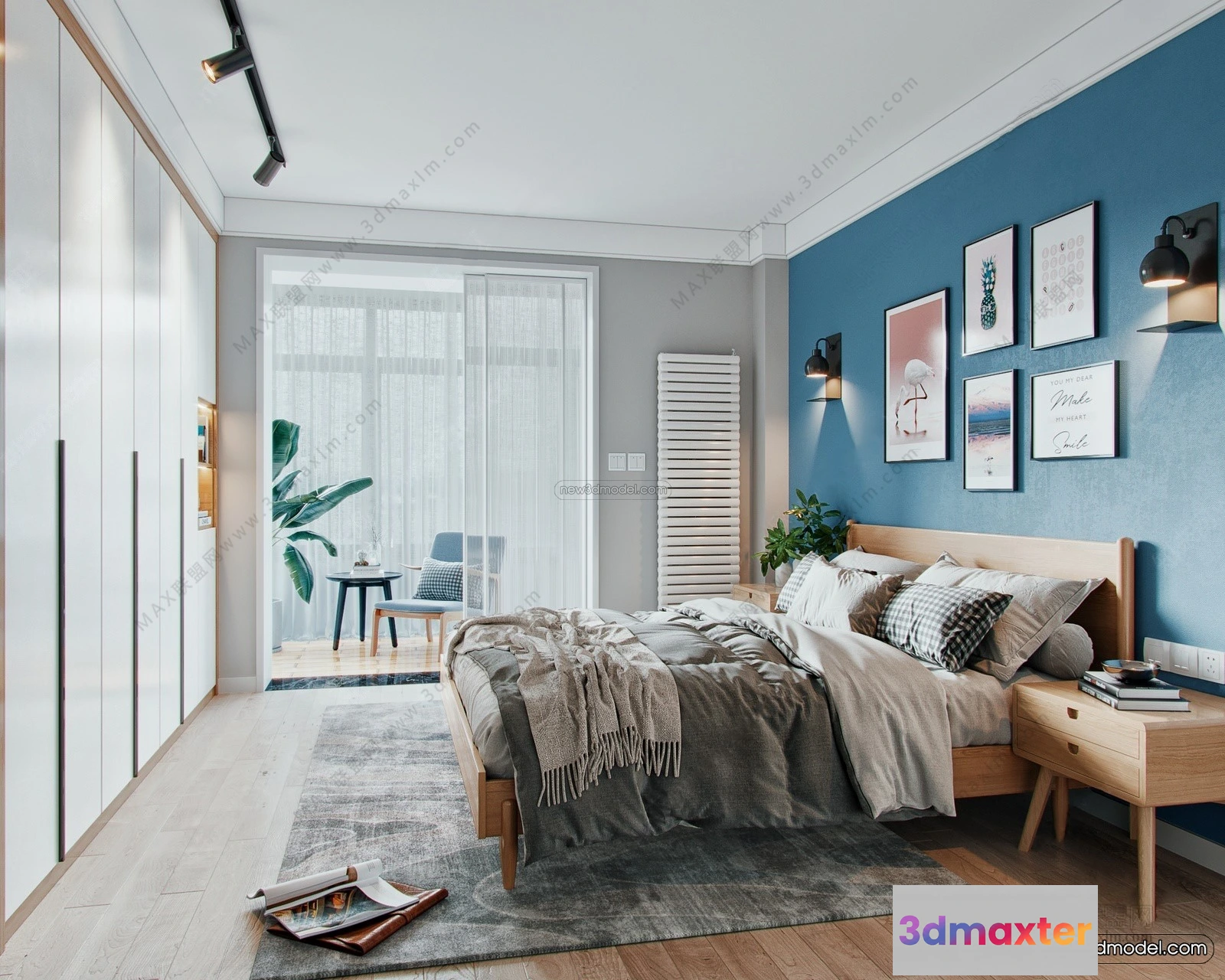 3D Models / 3D Scenes / Interior / Bedroom / Morandi Style Interior 3D Blocks – Bedroom 3D Scene – 151 3D Max
