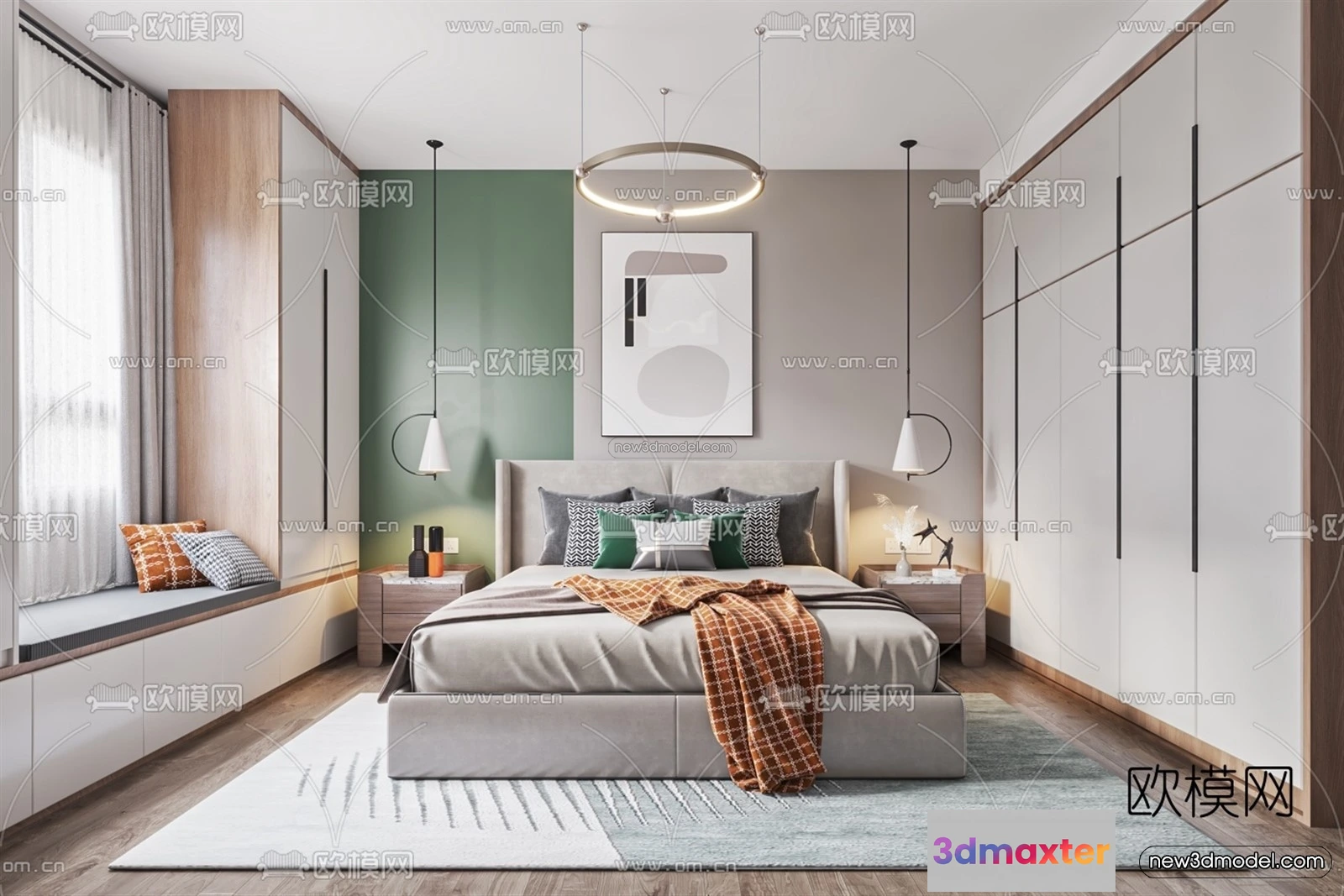 3D Models / 3D Scenes / Interior / Bedroom / Morandi Style Interior 3D Blocks – Bedroom 3D Scene – 159 3D Max