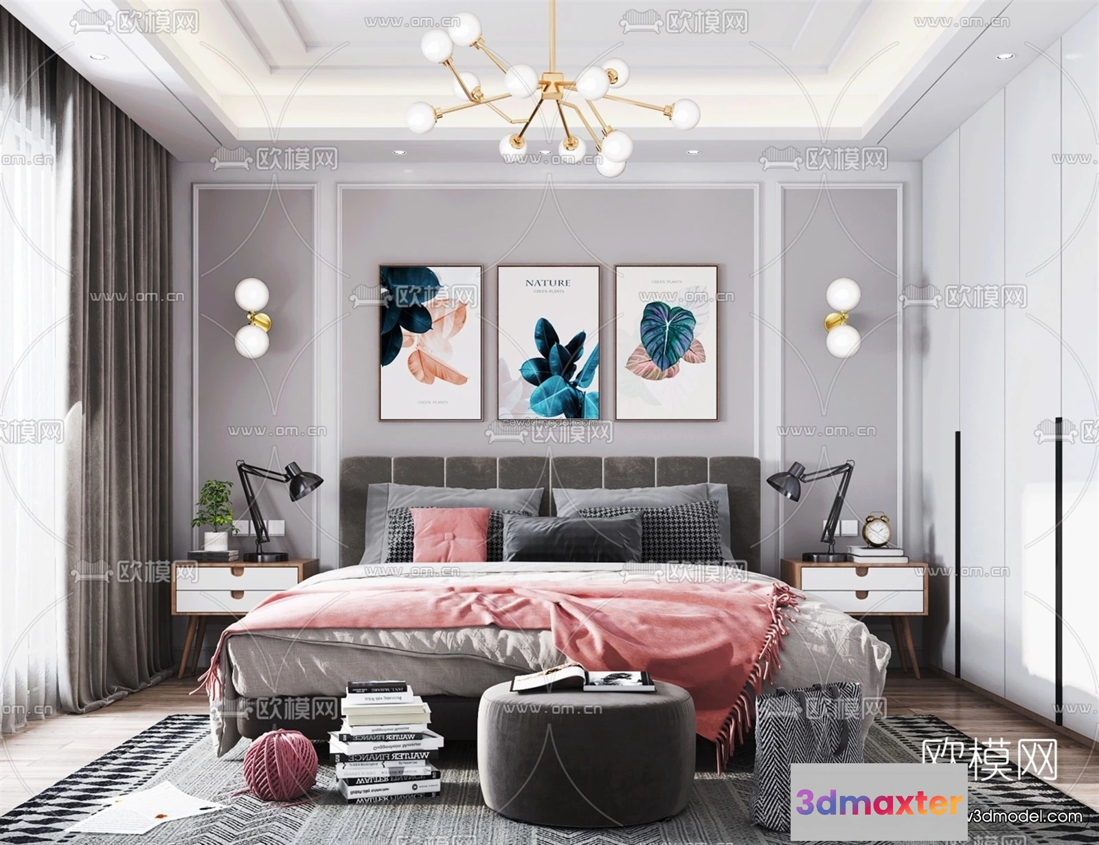 Morandi Style Interior 3D Blocks – Bedroom 3D Scene – 164 – Bedroom 3D Model – VRAY