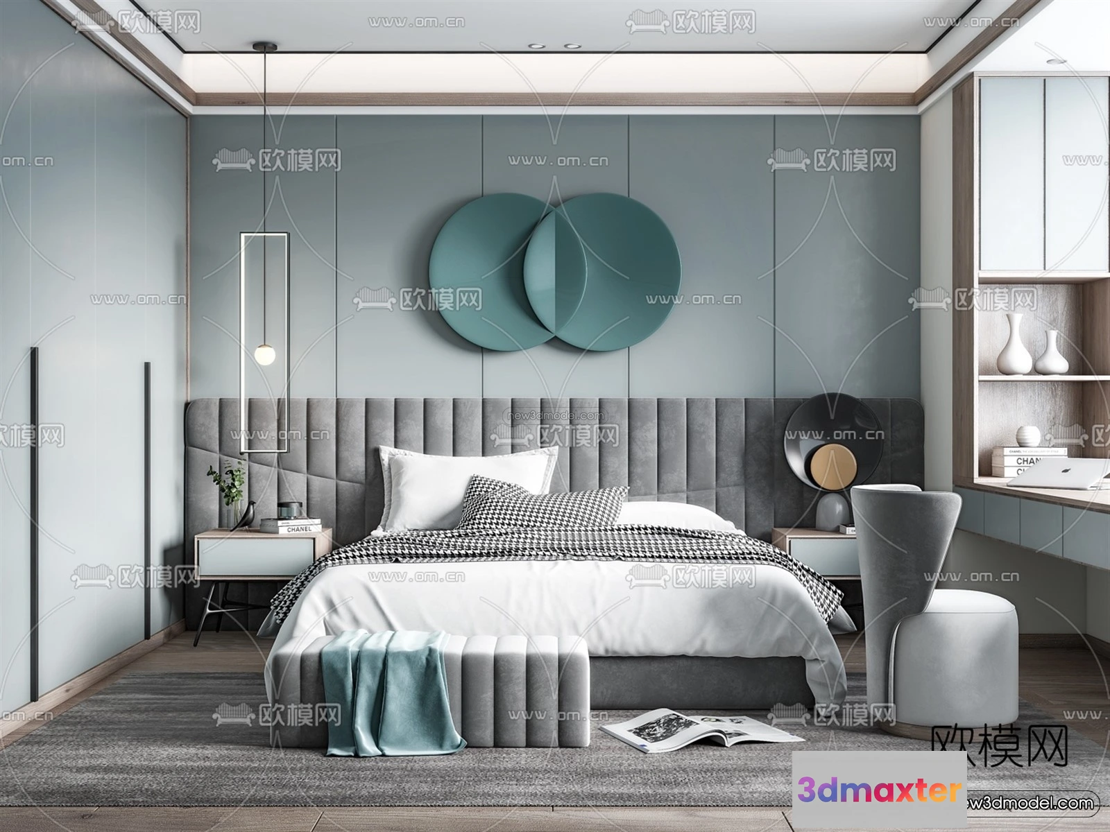 3D Models / 3D Scenes / Interior / Bedroom / Morandi Style Interior 3D Blocks – Bedroom 3D Scene – 168 3D Max