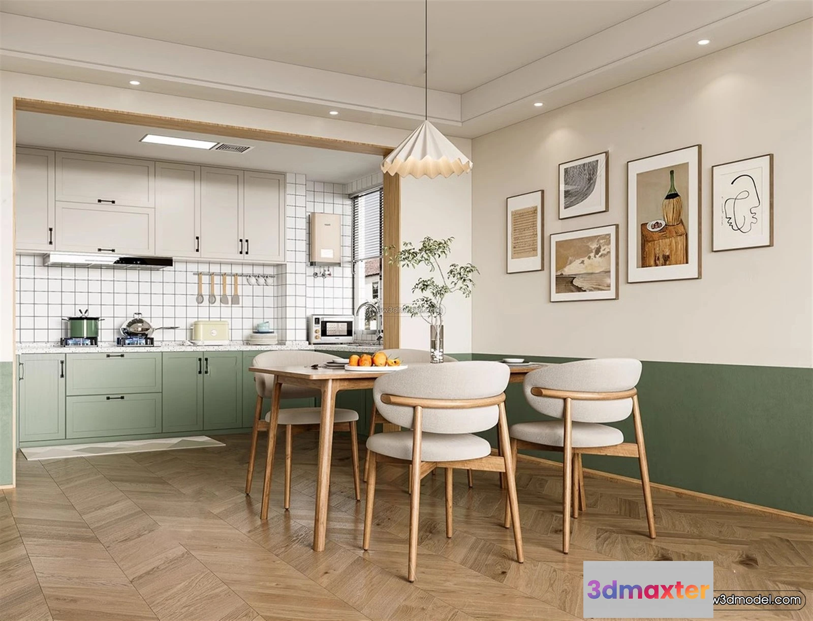 3D Models / 3D Scenes / Interior / Dining Room / Morandi Style Interior 3D Blocks – Dining 3D Scene – 184 3D Max