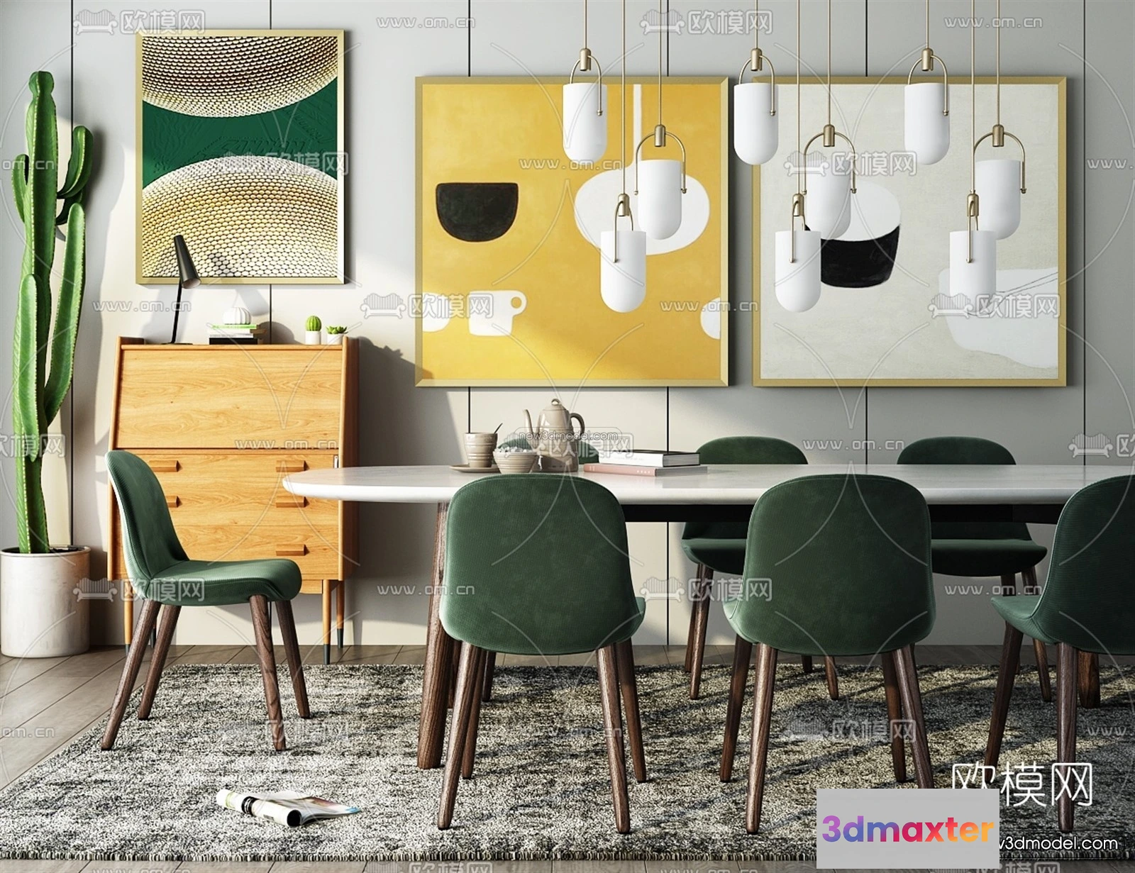 Morandi Style Interior 3D Blocks – Dining 3D Scene – 186 – Dining Room 3D Model – VRAY