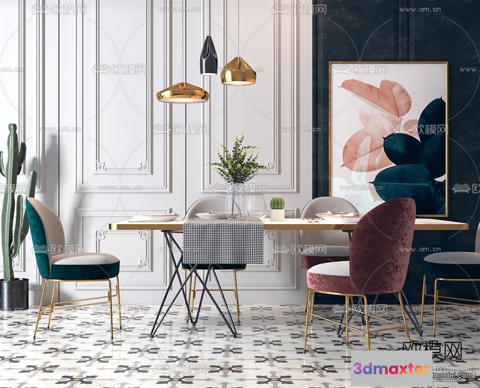 3D Models / 3D Scenes / Interior / Dining Room / Morandi Style Interior 3D Blocks – Dining 3D Scene – 188 3D Max