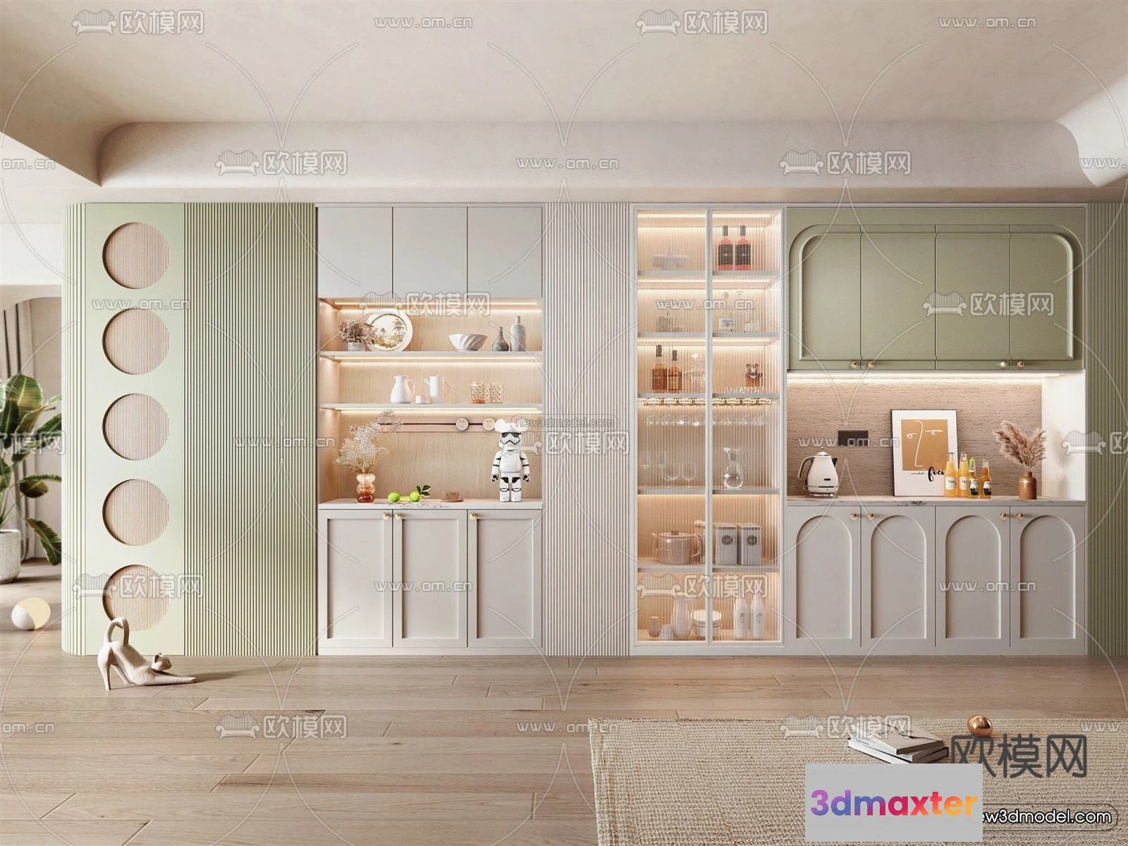 3D Models / 3D Scenes / Interior / Kitchen / Morandi Style Interior 3D Blocks – Kitchen 3D Scene – 215 3D Max