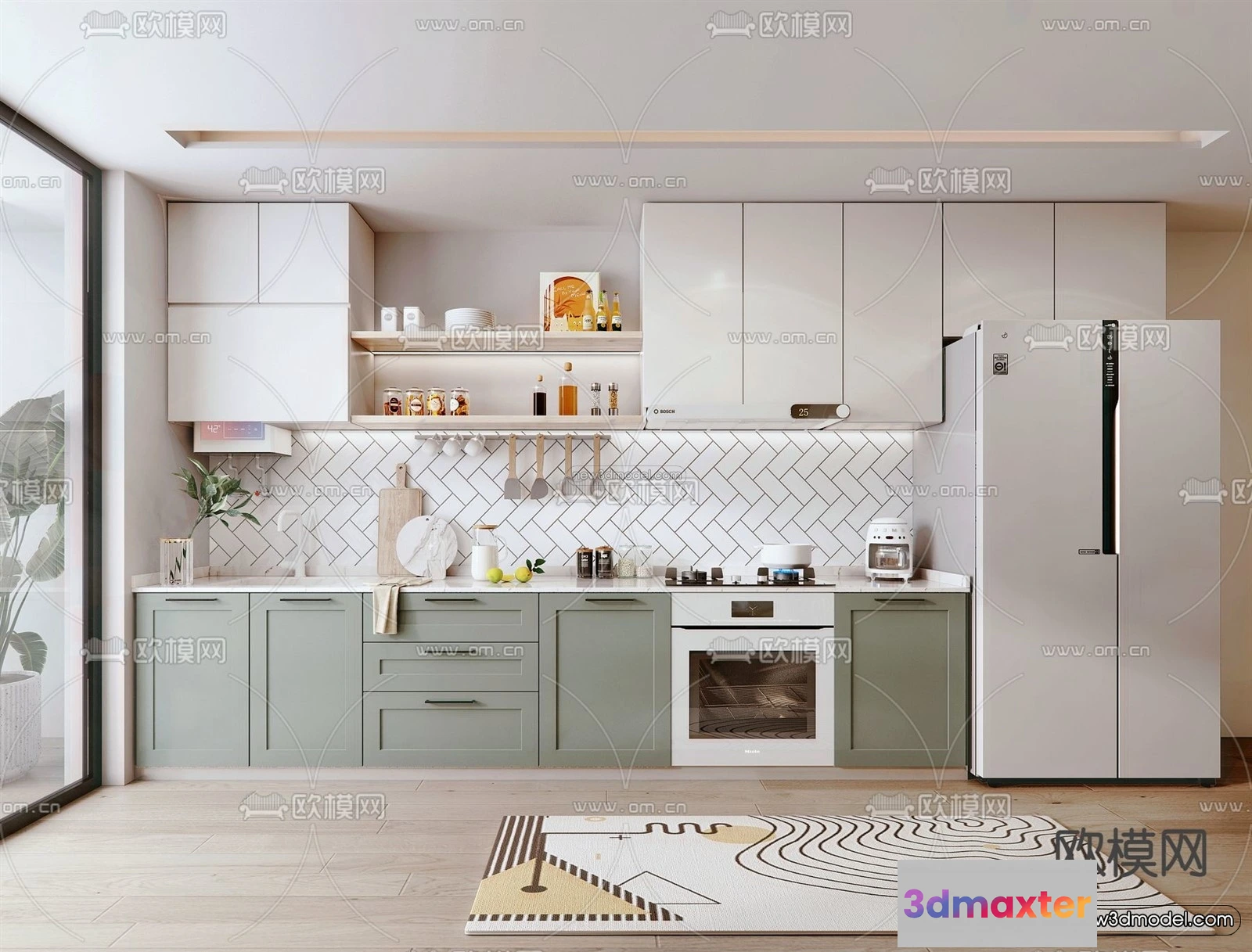 3D Models / 3D Scenes / Interior / Kitchen / Morandi Style Interior 3D Blocks – Kitchen 3D Scene – 217 3D Max