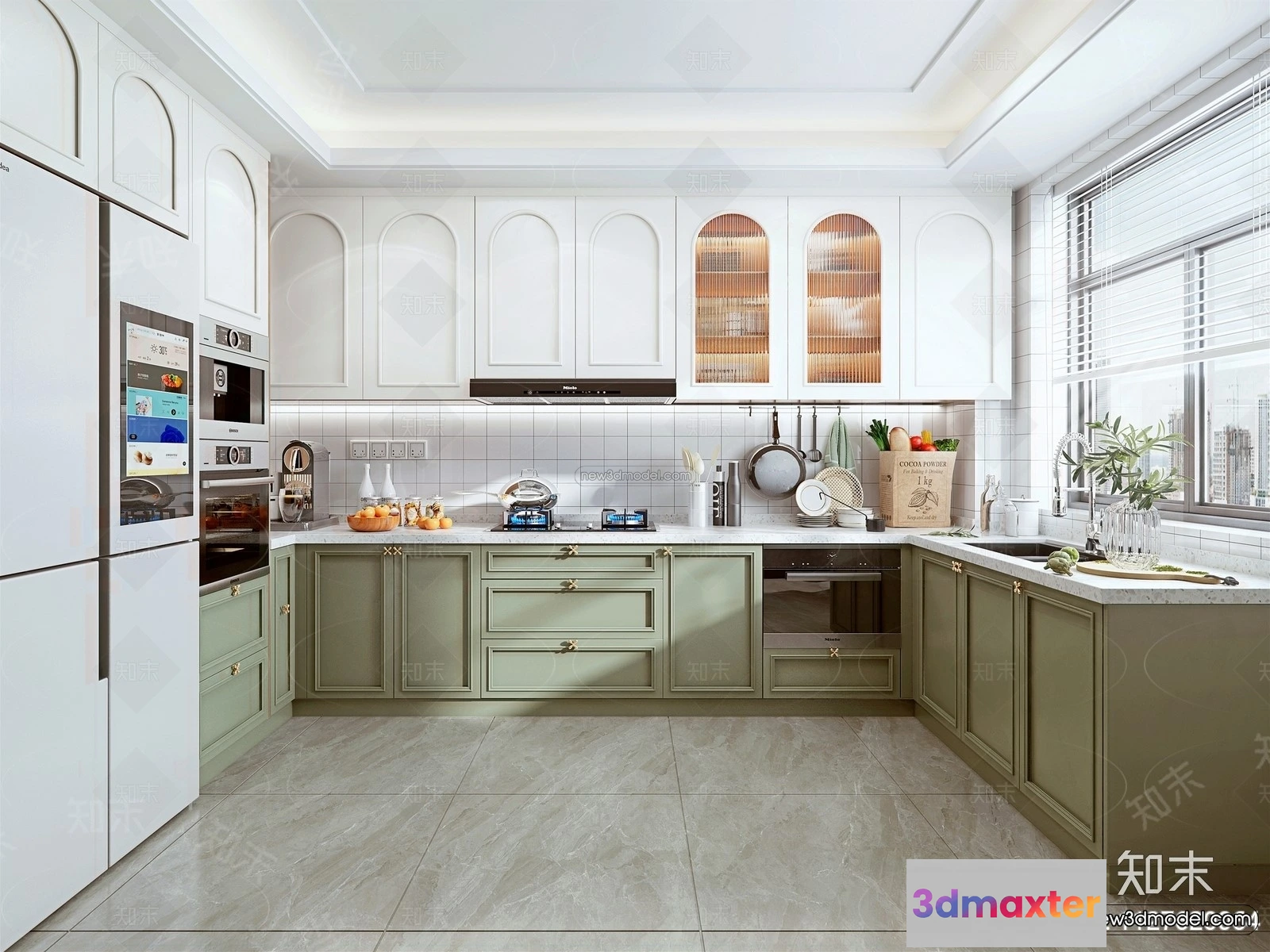 3D Models / 3D Scenes / Interior / Kitchen / Morandi Style Interior 3D Blocks – Kitchen 3D Scene – 223 3D Max