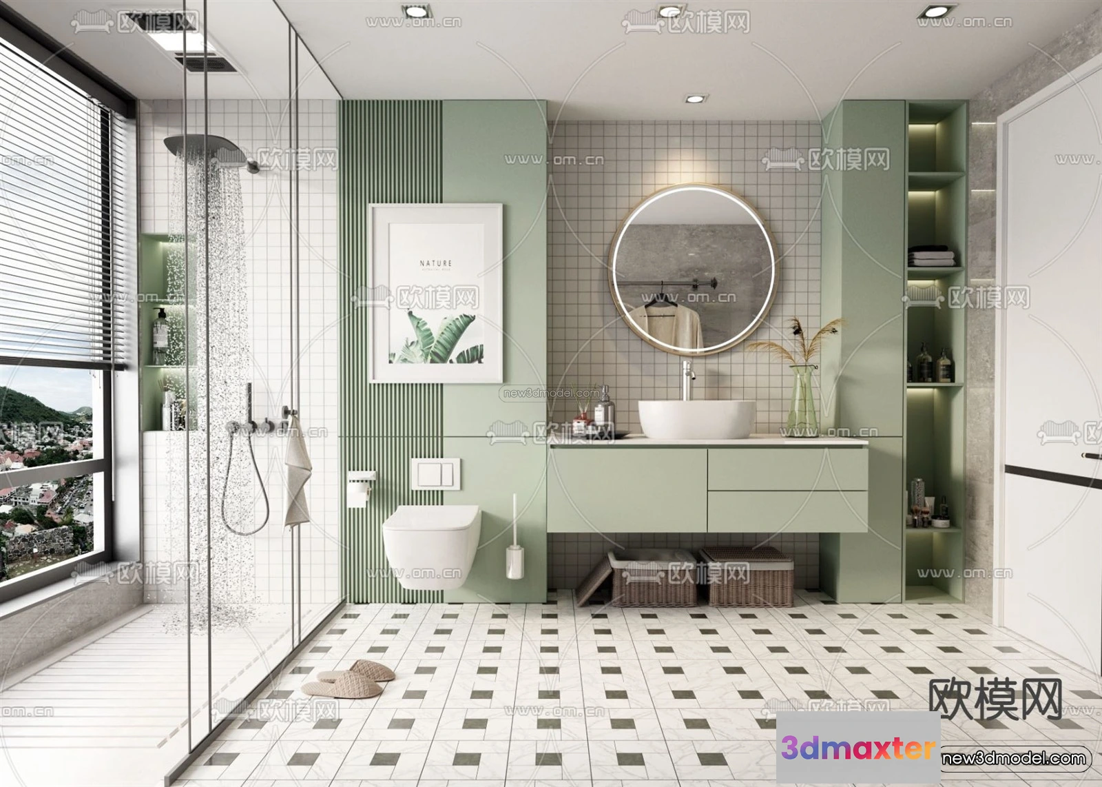 3D Models / 3D Scenes / Interior / Kitchen / Morandi Style Interior 3D Blocks – Kitchen 3D Scene – 224 3D Max