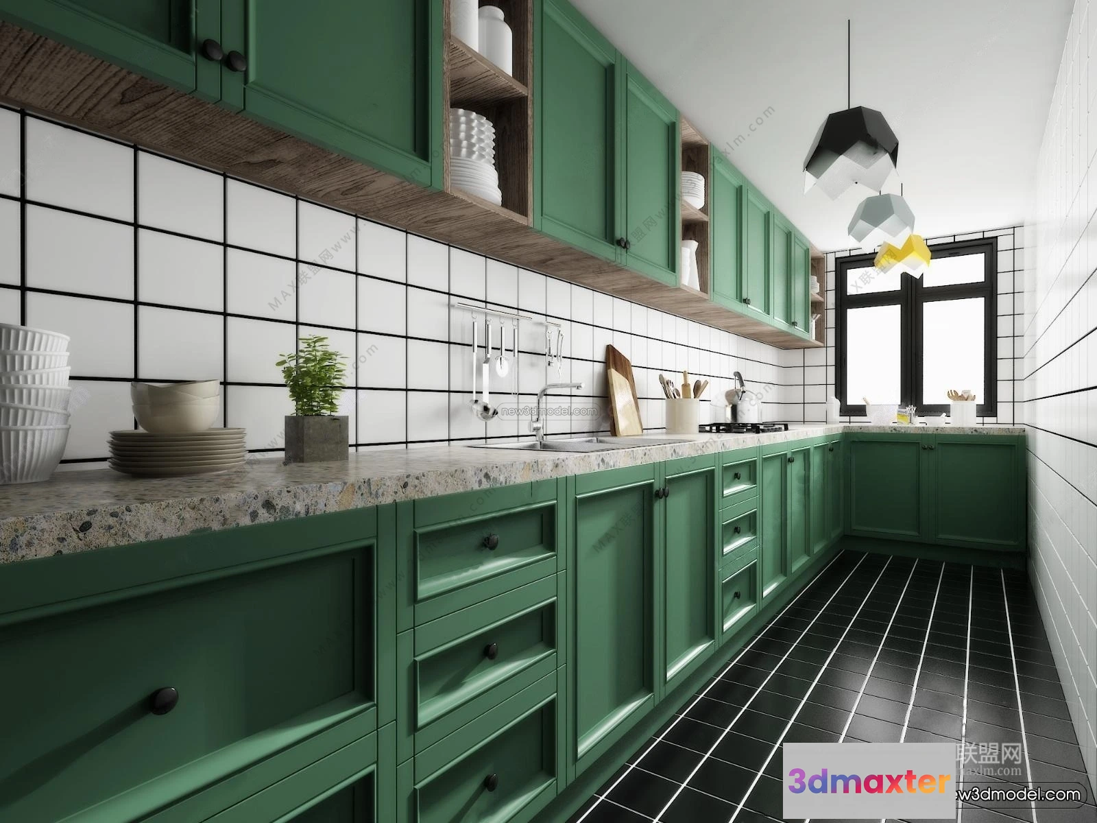 3D Models / 3D Scenes / Interior / Kitchen / Morandi Style Interior 3D Blocks – Kitchen 3D Scene – 227 3D Max