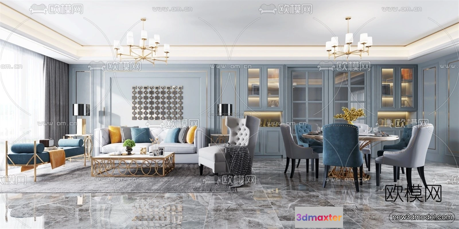 Morandi Style Interior 3D Blocks – Living Room 3D Scene – 009 – Living room 3D Model – VRAY