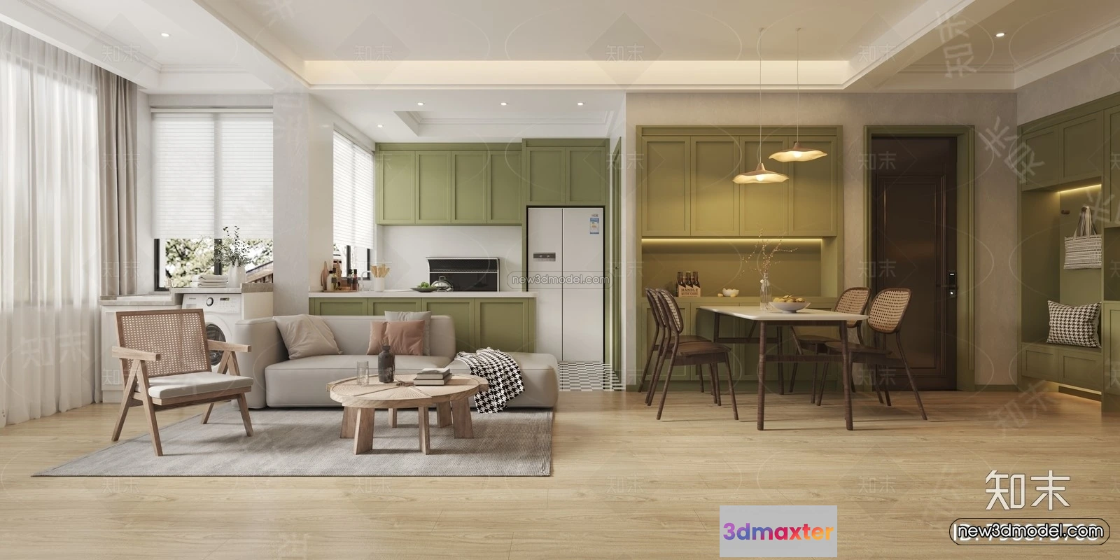 3D Models / 3D Scenes / Interior / Living Room / Morandi Style Interior 3D Blocks – Living Room 3D Scene – 030 3D Max