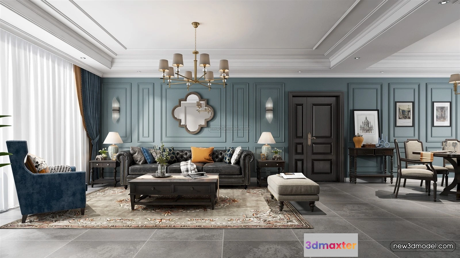 Morandi Style Interior 3D Blocks – Living Room 3D Scene – 033 – Living room 3D Model – VRAY