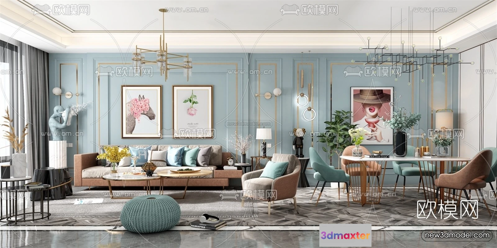 Morandi Style Interior 3D Blocks – Living Room 3D Scene – 038 – Living room 3D Model – VRAY