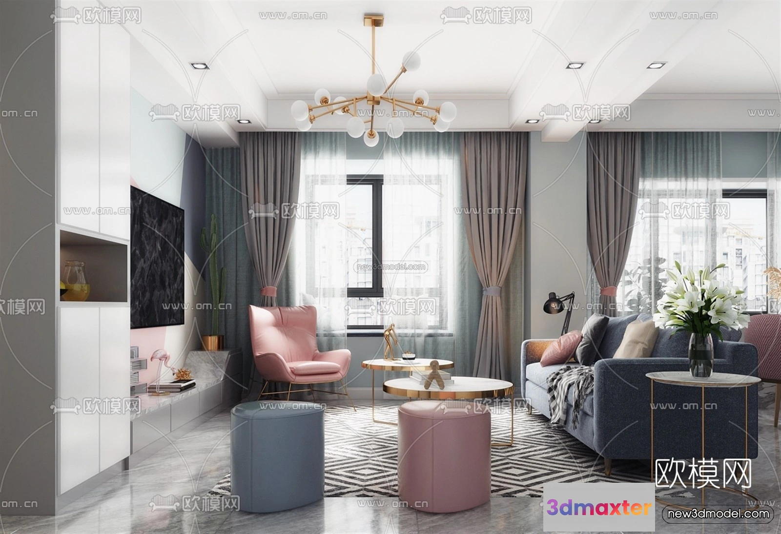 3D Models / 3D Scenes / Interior / Living Room / Morandi Style Interior 3D Blocks – Living Room 3D Scene – 047 3D Max