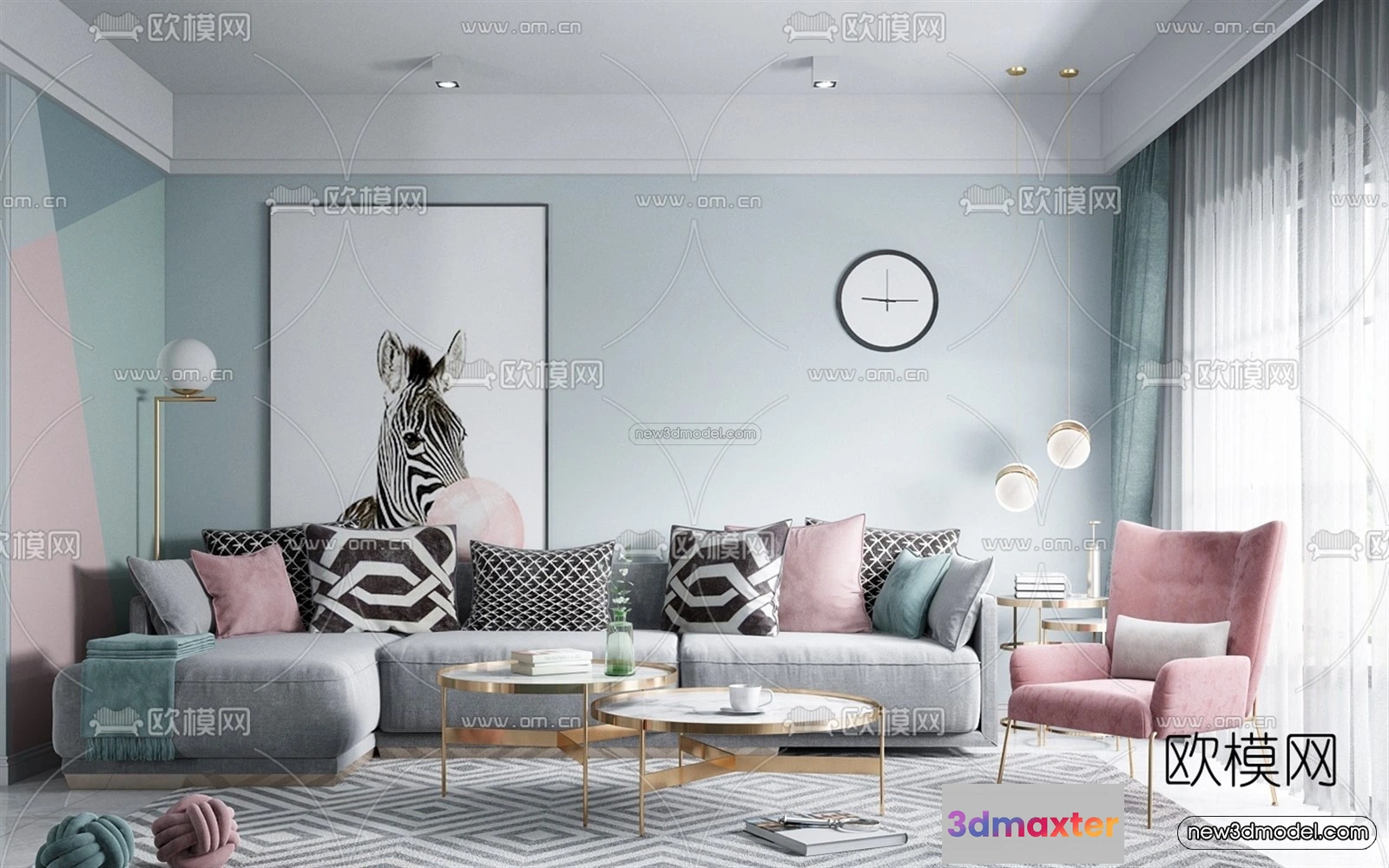 Morandi Style Interior 3D Blocks – Living Room 3D Scene – 064 – Living room 3D Model – VRAY