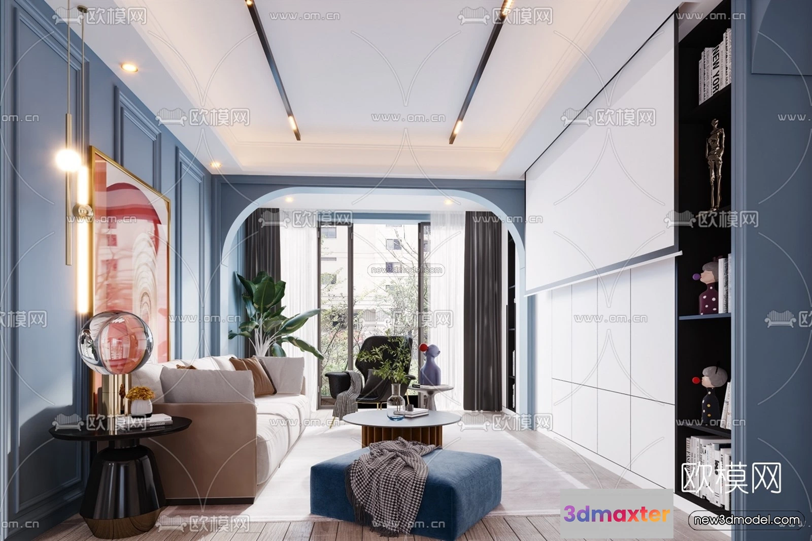 3D Models / 3D Scenes / Interior / Living Room / Morandi Style Interior 3D Blocks – Living Room 3D Scene – 072 3D Max