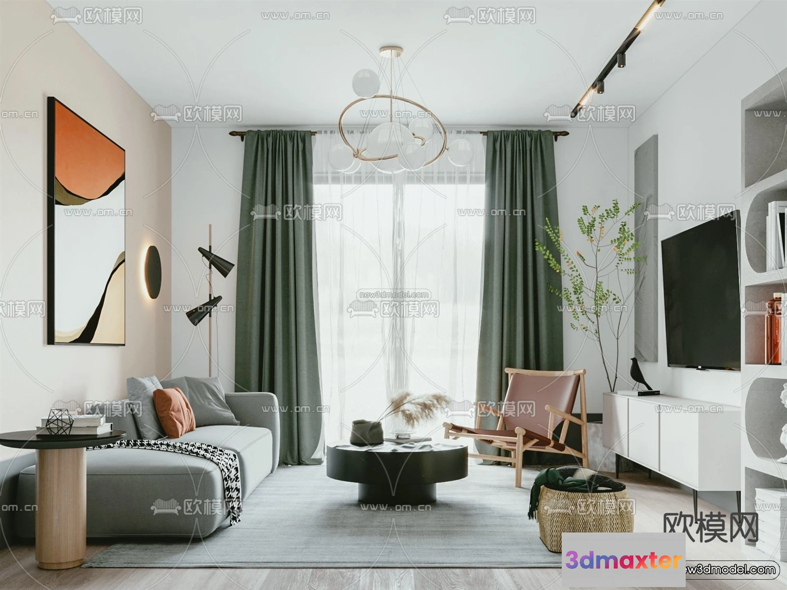 3D Models / 3D Scenes / Interior / Living Room / Morandi Style Interior 3D Blocks – Living Room 3D Scene – 076 3D Max