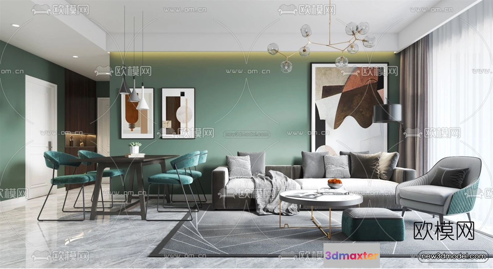 Morandi Style Interior 3D Blocks – Living Room 3D Scene – 084 – Living room 3D Model – VRAY
