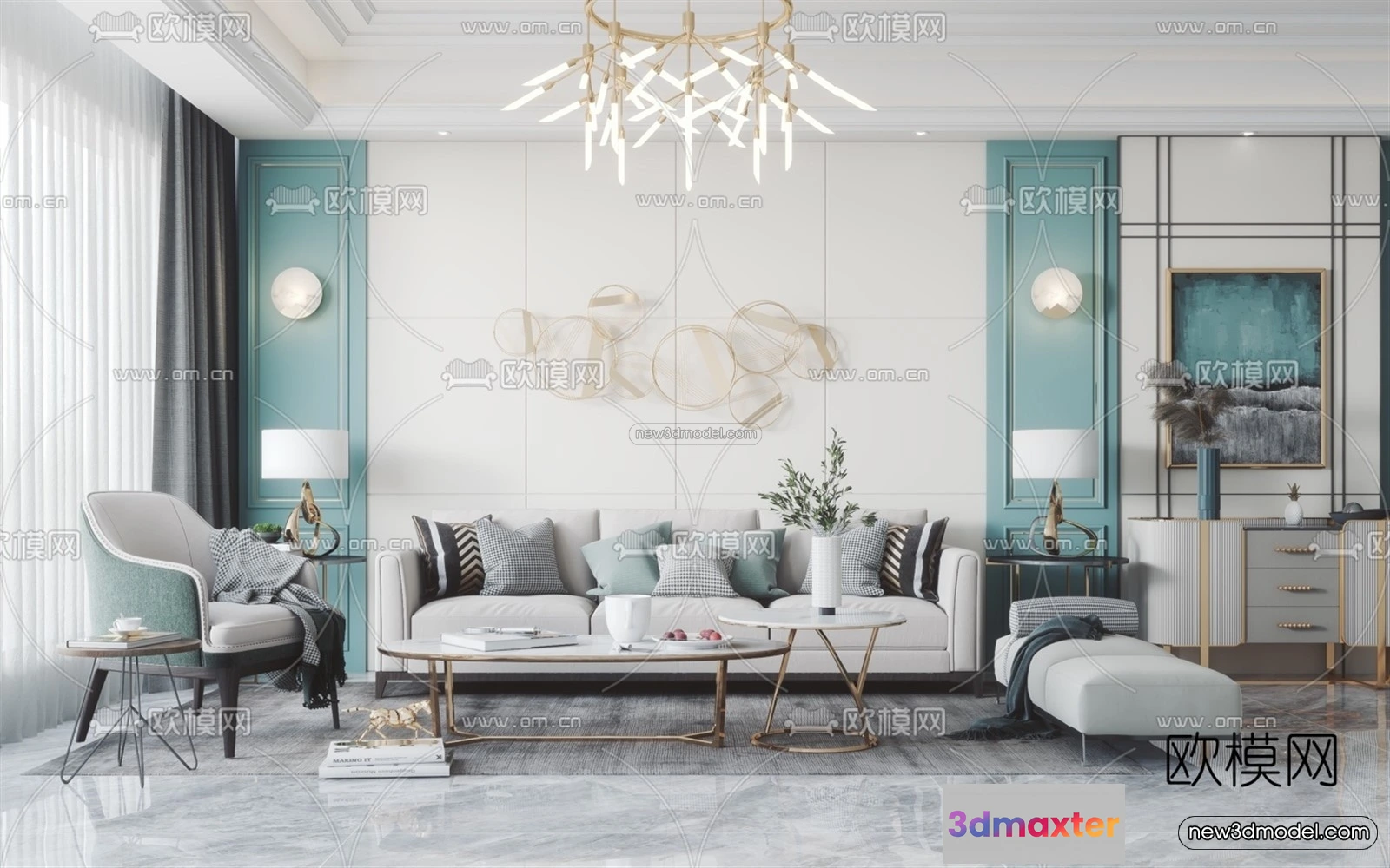 Morandi Style Interior 3D Blocks – Living Room 3D Scene – 089 – Living room 3D Model – VRAY