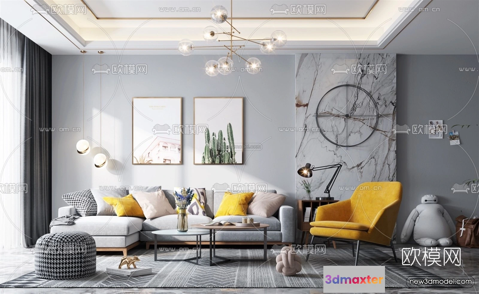 3D Models / 3D Scenes / Interior / Living Room / Morandi Style Interior 3D Blocks – Living Room 3D Scene – 092 3D Max