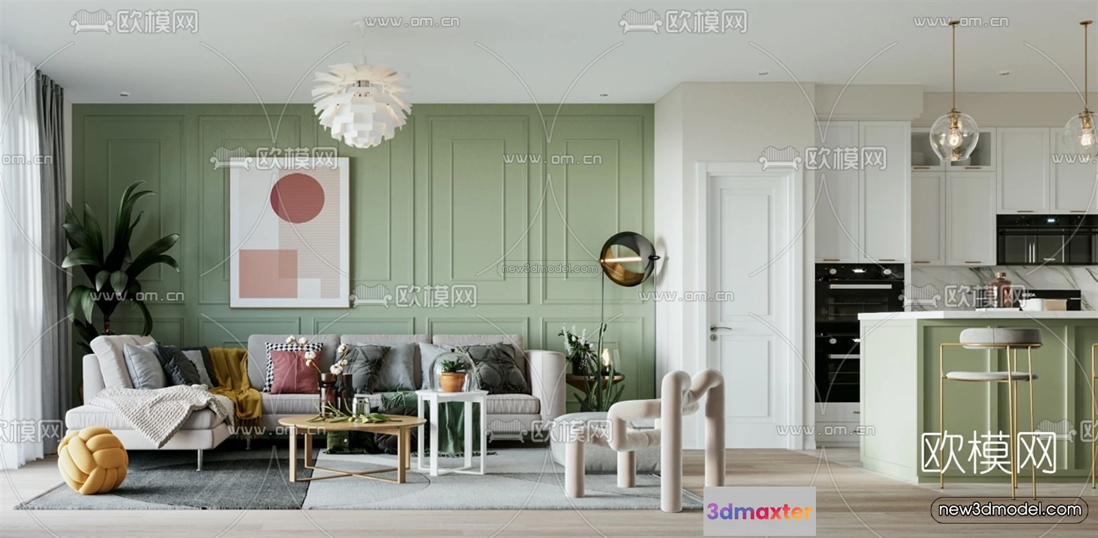 Morandi Style Interior 3D Blocks – Living Room 3D Scene – 116 – Living room 3D Model – VRAY