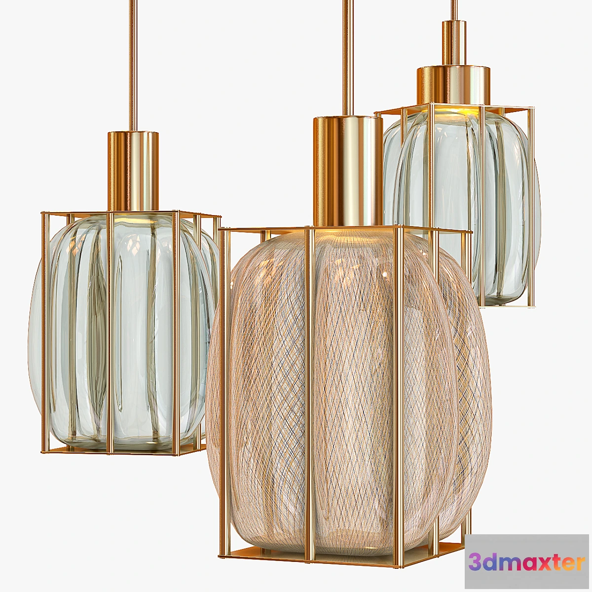 http://mydriaz-paris.com/Site/projet.php?pjt=02_lanternes&type=0&lang=en Mydriaz Lanternes Avec Jeremy Wintrebert Roof lamps limited edition – Height (cage) / small: 135x135x21cm / large: 18x18x28cm – Polished brass blown glass E14 bulb In collaboration with glass artist Jeremy Wintrebert. The model is based on the original manufacturer dimensions and technical data. Materials and groups are named the same as the model. Instance geometry one multi-submaterial for model for easy change or setup