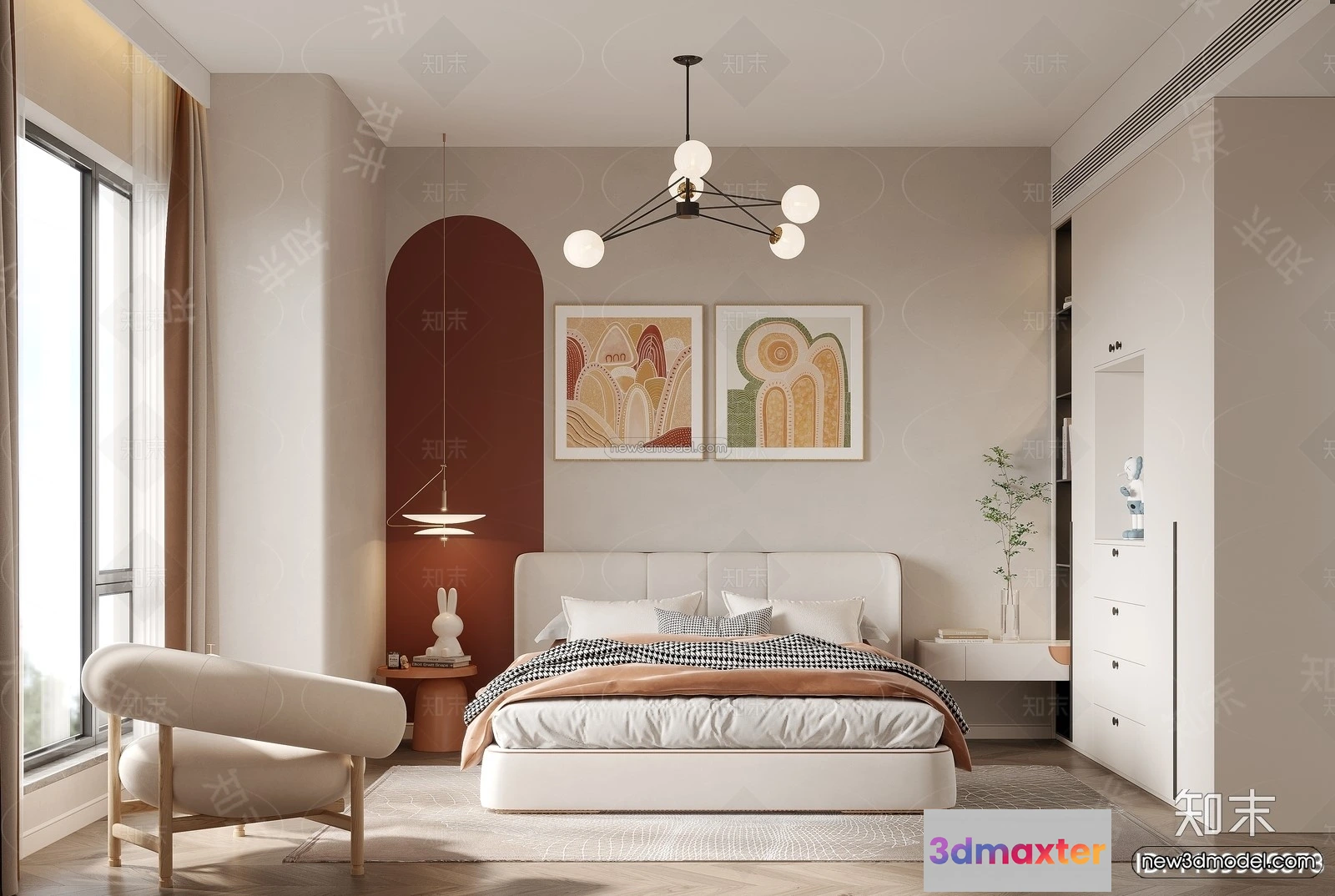 3D Models / 3D Scenes / Interior / Bedroom / Nordic Style Interior 3D Blocks – Bedroom 3D Model – 283 3D Max